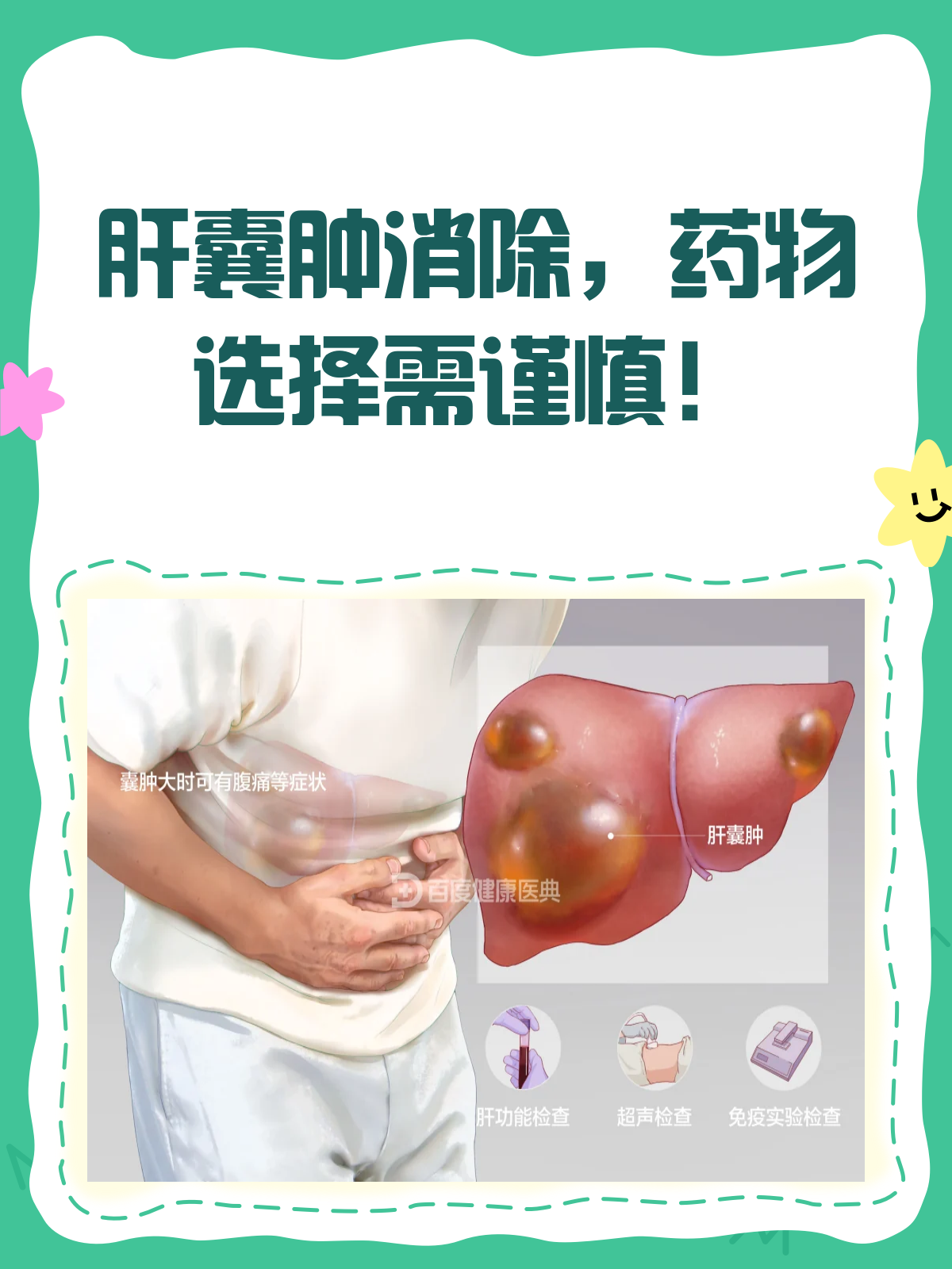 肝囊肿的严重程度需根据具体情况判断囊肿较小且无症状时多数肝囊肿体积较小,直径在5厘米以下,且没有压迫周围组织或引起相关不适症状这种情况一般不严重,对身体功能影响不大,通常不需要特殊治疗,只需定期复查超声等检查,观察囊肿的变化情况即可囊肿较大或有并发症时情况相对较严重当囊肿;大多数肝囊肿不严重,但需根据具体情况判断肝囊肿的严重程度主要取决于囊肿的大小数量位置及是否引发症状,其性质多为良性,通常不会对健康造成严重威胁,但需结合个体情况综合评估从类型与症状看,先天性肝囊肿多为单发或散发,小囊肿通常无症状,常在体检时偶然发现大囊肿可能压迫周围组织,引发;多数肝囊肿不严重大多数肝囊肿生长缓慢,不引起任何症状,对肝功能及周围组织无影响,这种情况下通常不需要特殊处理,定期复查腹部超声观察囊肿大小形态变化即可例如,多数直径小于5厘米的单发肝囊肿,患者多无自觉症状,仅在体检时偶然发现但以下情况相对严重当囊肿增大到一定程度,压迫周围组织器官,可引起相应症状,如压迫。