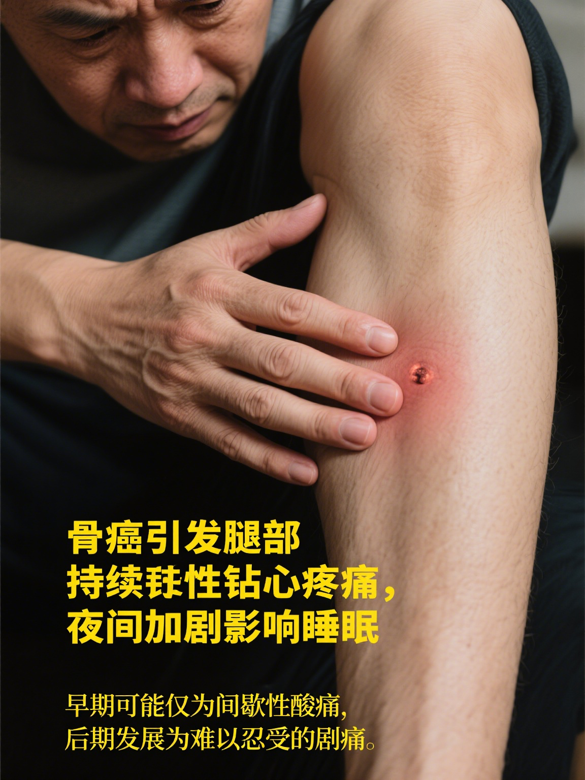 15、1 全身性症状患者可能出现持续的乏力低热,且伴随体重下降食欲减退等消耗性表现这些症状易被误认为普通疲劳或慢性疾病,需结合其他体征综合判断2 局部剧烈疼痛骨癌早期常表现为深部钝痛或刺痛,夜间疼痛加剧是典型特征疼痛可能随活动加重,休息后缓解不明显,与普通关节痛或肌肉劳损有显著差异。