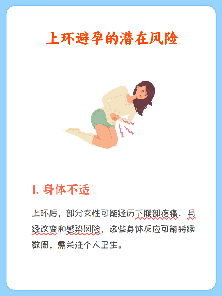 9、上环操作通常会引起一定不适,但一般不会出现剧烈难以忍受的疼痛,且疼痛通常在几分钟内缓解若对疼痛敏感,可选择无痛上环以减轻不适上环宫内节育器放置术是通过将节育器植入子宫内实现避孕或治疗目的的医疗操作操作过程中,医生需通过宫颈将节育器送入子宫腔,这一步骤可能引发短暂的不适感,具体表现为下腹部坠胀。