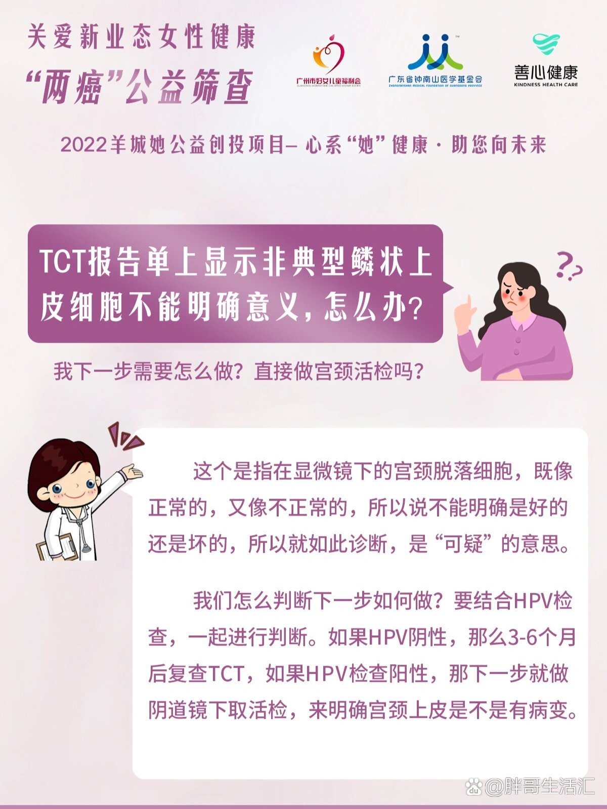 若TCT检查发现非典型鳞状上皮细胞不能明确意义,需按以下步骤处理1 进一步检查明确病因医生通常会建议进行HPV检测,以判断是否感染高危型HPV病毒如HPV1618型,这类病毒与宫颈癌前病变及宫颈癌密切相关若HPV阳性或TCT结果持续异常,需进一步行阴道镜检查,通过放大宫颈图像观察细胞形态及血管变化。