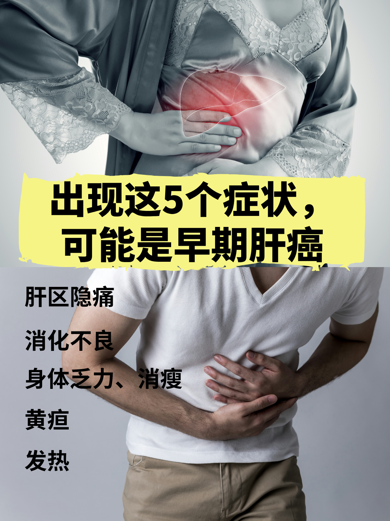 肝癌早期的征兆主要包括以下几点右上腹不适疼痛胀痛或隐痛这是肝癌早期较为常见的症状,可能表现为持续或间歇性的不适感消化道症状恶心呕吐由于肝脏是消化系统的重要部分,其功能受损可能导致这些症状的出现消化道出血如果肝脏肿块出血,可能会引起黑便或呕血皮肤和凝血问题皮肤发黄;肝癌早期症状多样且不典型,易被忽视,主要包括以下方面1肝区疼痛为肝癌最常见症状之一,表现为右上腹或中上腹隐痛胀痛或刺痛,部分患者疼痛可向右肩或右背部放射疼痛机制与肝癌细胞侵犯肝脏组织刺激肝包膜或肝门附近神经丛有关2乏力与消瘦肝癌细胞代谢活跃,大量消耗能量和营养物质,导致患者。