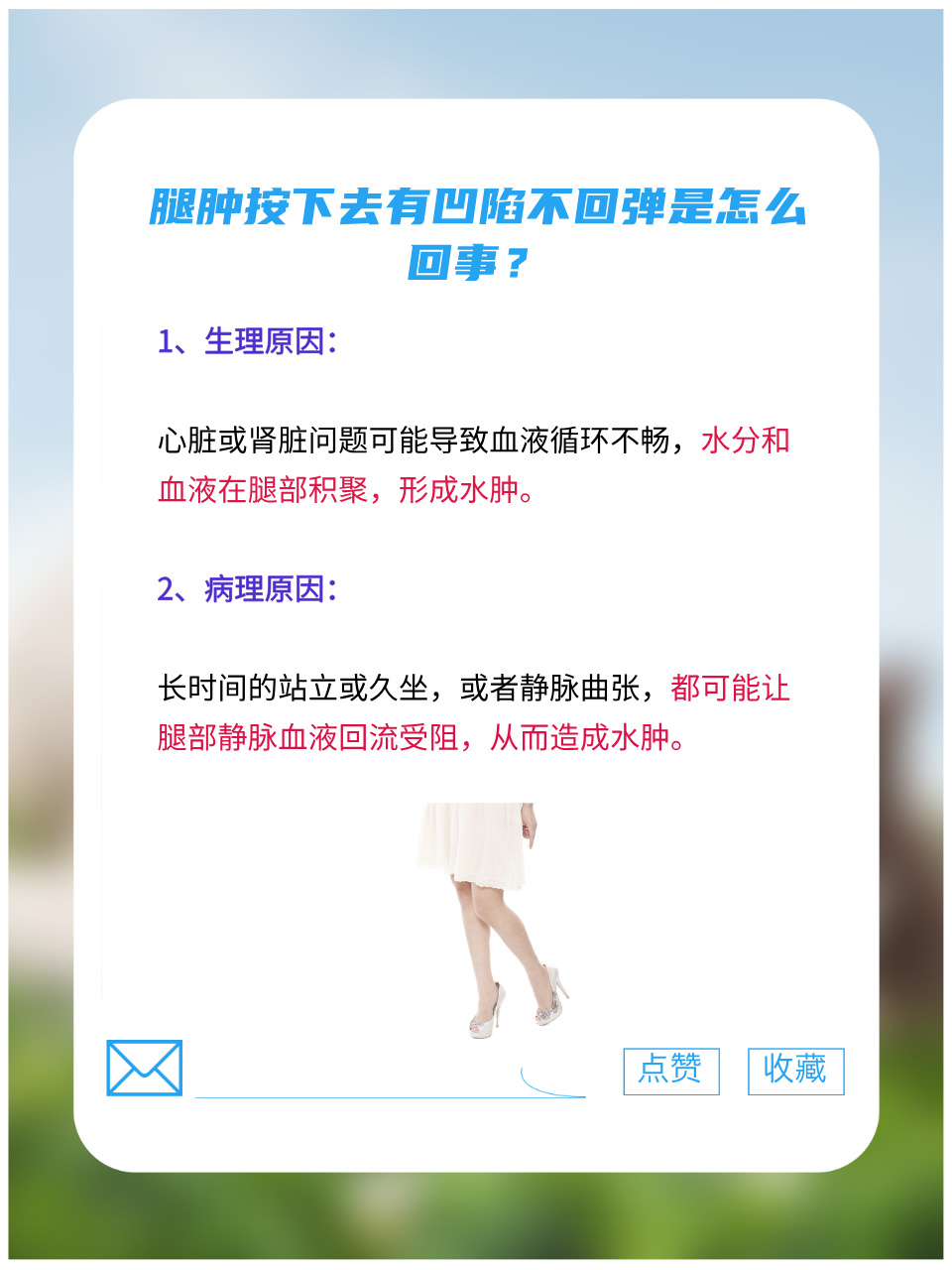 腿肿可能由心脏疾病肾脏疾病肝脏疾病等多种原因引起,具体如下心脏疾病当发生心功能不全或心力衰竭时,静脉血液回流受阻,导致静脉压力升高此时,液体从血管渗入组织间隙,形成水肿典型表现为下肢水肿,常伴随腹胀肝大颈静脉怒张等症状这种水肿多与心脏泵血功能下降直接相关,需通过心电图。