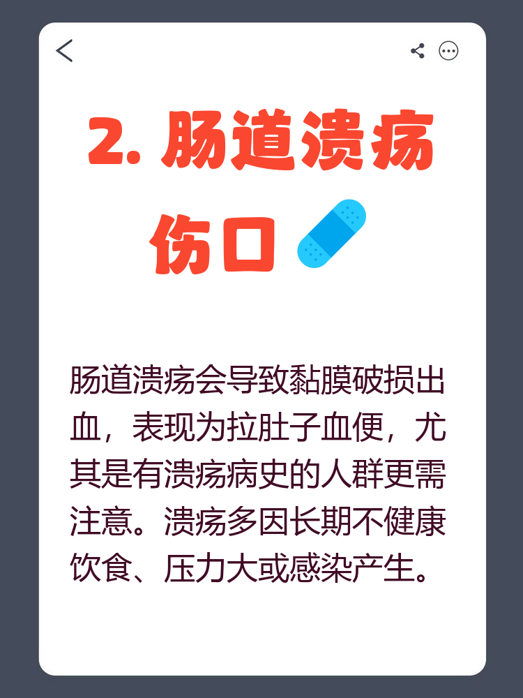 11、炎症性肠病也不容忽视溃疡性结肠炎多见于中青年,与自身免疫反应有关,肠道黏膜持续处于炎症状态,形成溃疡导致出血,病变多累及直肠和乙状结肠,症状包括腹泻黏液脓血便腹痛等克罗恩病可发生在全消化道,以回肠末端和右半结肠多见,病变累及肠道黏膜血管时可出现便血,患者还可能伴有腹痛腹部包。