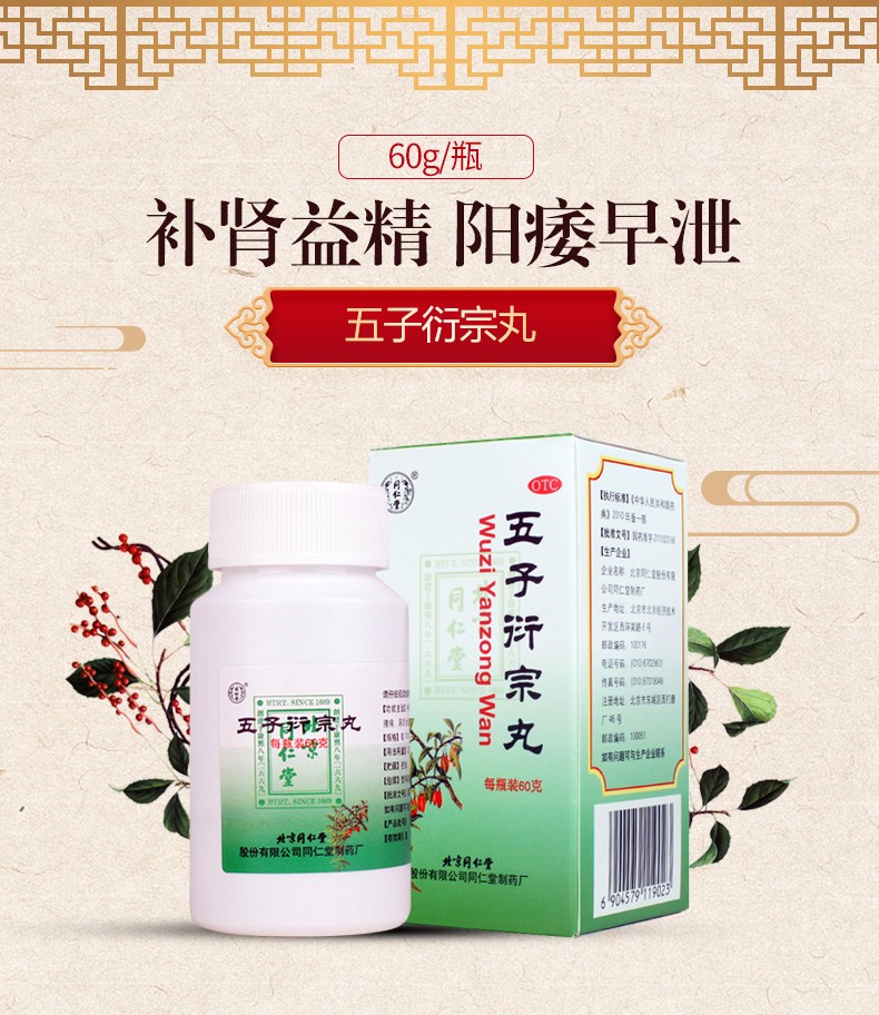 一个人体验 服用一年的五子衍宗丸后,患者普遍感觉身体有明显的改善随着用药时间的延长,他们在性生活中的持续时间有所延长,生殖器的勃起状态也有所改善此外,原本常见的腰膝酸软疲劳乏力以及遗精等症状也明显减轻,精神状态变得更好,更有活力二功效与作用 五子衍宗丸作为补肾的良方,历史悠久,广泛应用于治疗肾虚精少阳痿早泄。