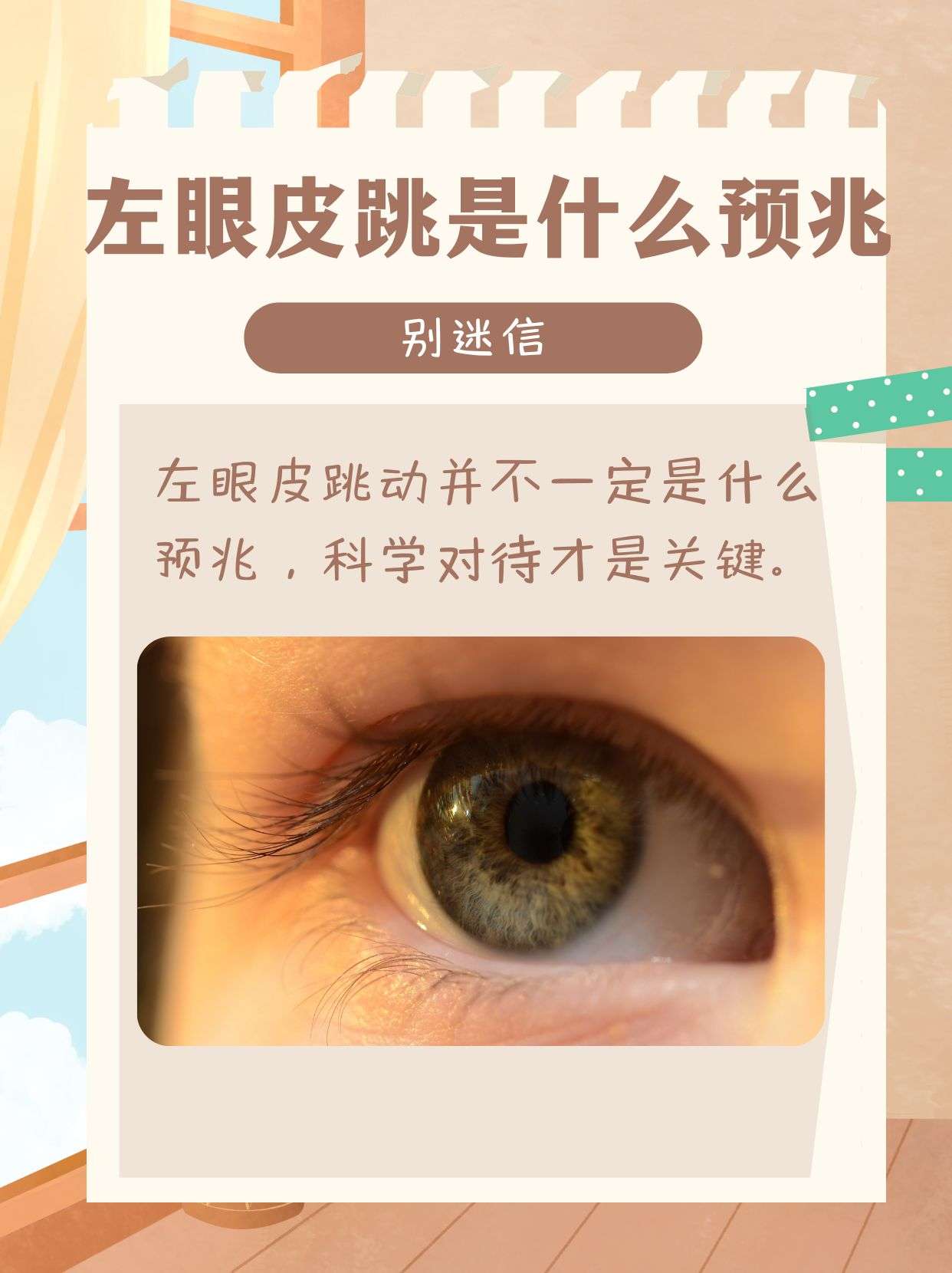 9、左眼皮跳可能与以下原因有关,可通过相应方法改善缓解1用眼过度长时间使用电子产品如电脑手机或持续阅读写作,会导致眼周肌肉过度紧张,引发眼皮跳动改善方法每用眼3040分钟远眺510分钟,放松眼部肌肉每日做眼保健操,促进局部血液循环,缓解紧张状态2精神紧张工作或生活压力过大时。