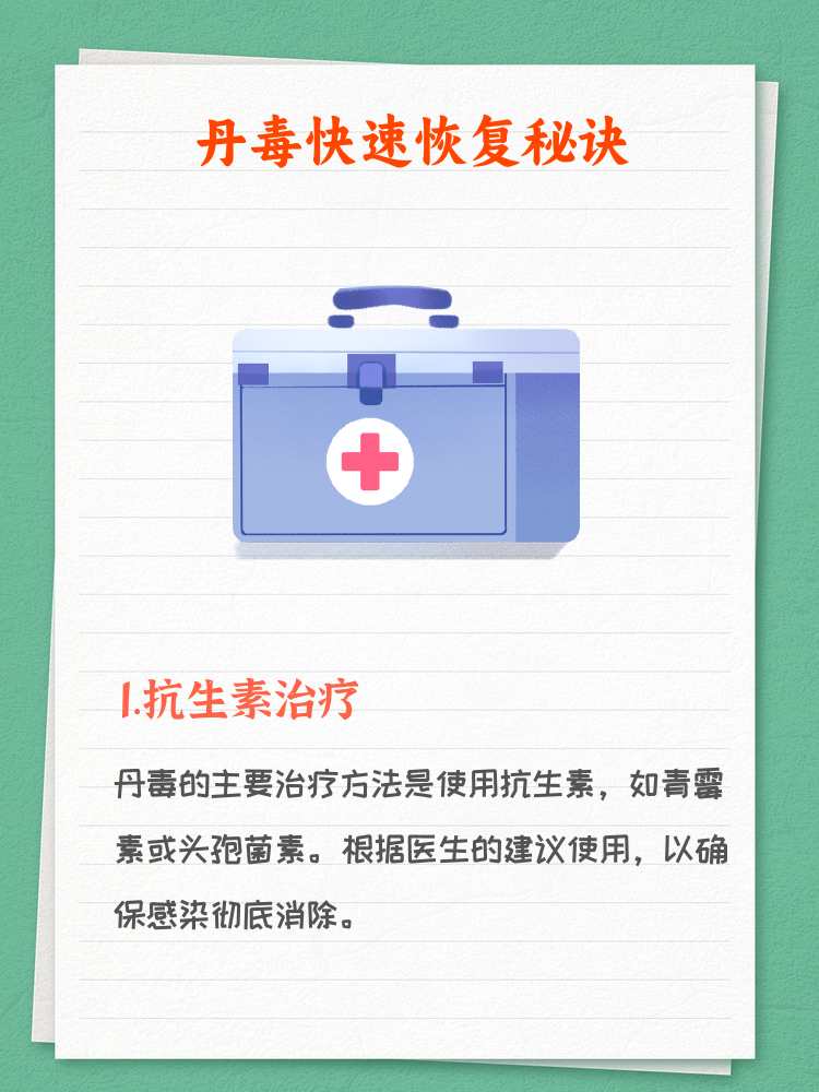 1、丹毒一般23周可以治好,但具体时间因治疗方式和个体差异而有所不同常规治疗情况下,丹毒从发病开始算起,通常1014天可达到临床治愈标准但需注意,即使症状消失,仍需继续用药35天以巩固疗效,防止复发因此,从发病到彻底停药,总疗程约为23周此阶段需严格遵医嘱使用消炎药物如青霉素类;但是丹毒治疗的时间至少要维持两周,抵抗力比较低或者反复发作丹毒的人,疗程需要持续更长的时间建议日常饮食以清淡为主,如牛羊肉及海鲜等偏热的食物及辛辣的食物在发病时都不能吃平时多休息,不要过于疲劳,要劳逸结合;治疗方法主要包括以下方面系统治疗首选青霉素类药物,疗程通常为10~14天对青霉素过敏者,可选用大环内酯类抗菌药物如红霉素复发性丹毒患者需在淋巴管炎活动期采用大剂量抗菌药物,后续以间歇性小剂量维持治疗,以降低复发风险局部治疗皮损表面可外用抗菌软膏如莫匹罗星加压治疗如;2注意个人卫生 夏季的温度湿度很适合真菌生长,尤其梅雨季节即将到来,更要注意勤换鞋袜,洗脚后擦干净脚趾和脚丫,保持脚部的清洁和干燥不用公用拖鞋足盆等,减少交叉感染的机会3及时治疗 积极寻求中医药治疗,切勿长时间使用抗生素中医认为,丹毒为心脾火毒之症,多因血热内郁,外感毒邪;丹毒的治疗原则主要包括以下几个方面一基础护理与局部处理患者需卧床休息,并抬高患肢以减轻肿胀和疼痛局部治疗可采用50%硫酸镁湿敷,通过渗透作用缓解炎症促进水肿消退同时需保持皮肤清洁,避免刺激或摩擦患处,防止感染扩散二全身抗菌治疗尽早足量足疗程使用抗菌药物是核心原则首选静脉滴;外科疗法对系统治疗和局部治疗无效的患者,在急性炎症控制后通常为症状缓解后2~4周,可考虑外科干预大隐静脉切除术适用于静脉曲张继发丹毒者,通过改善静脉回流减少复发淋巴管静脉吻合术则针对淋巴管严重阻塞者,重建淋巴液引流通道特殊人群注意事项儿童患者需根据体重调整药物剂量,避免使用;孕妇禁用四环素类,可选用青霉素或头孢菌素类,需权衡药物对胎儿的影响老年患者免疫力下降,病情可能更重,治疗时间延长,需密切监测病情变化糖尿病患者需严格控糖,同时抗感染治疗,因高血糖易加重感染且延缓愈合免疫功能低下者如艾滋病患者病情进展快,治疗难度大,需根据免疫状态制定个性化方案治疗期间,患者需注意休息,抬高患肢,避免劳累和二次感染若出;个体差异对病程的影响患者免疫功能状态是决定病程长短的关键因素之一免疫系统较强者可能缩短恢复期,而存在基础疾病如糖尿病慢性肝病或免疫抑制状态的患者,恢复时间可能延长至1个月以上这类患者需更密切的监测和更长期的抗感染治疗早期干预的潜在优势在丹毒发病初期48小时内启动治疗,可能显著;丹毒的治愈时间及抗生素使用时长因人而异,通常需数天至数周,具体取决于以下因素1 感染严重程度轻度丹毒可能通过数天至12周的抗生素治疗缓解,但若感染扩散至深部组织或引发淋巴结炎淋巴管炎等并发症,治疗周期可能延长至34周甚至更久2 患者健康状况患有糖尿病免疫功能低下或慢性疾病的。