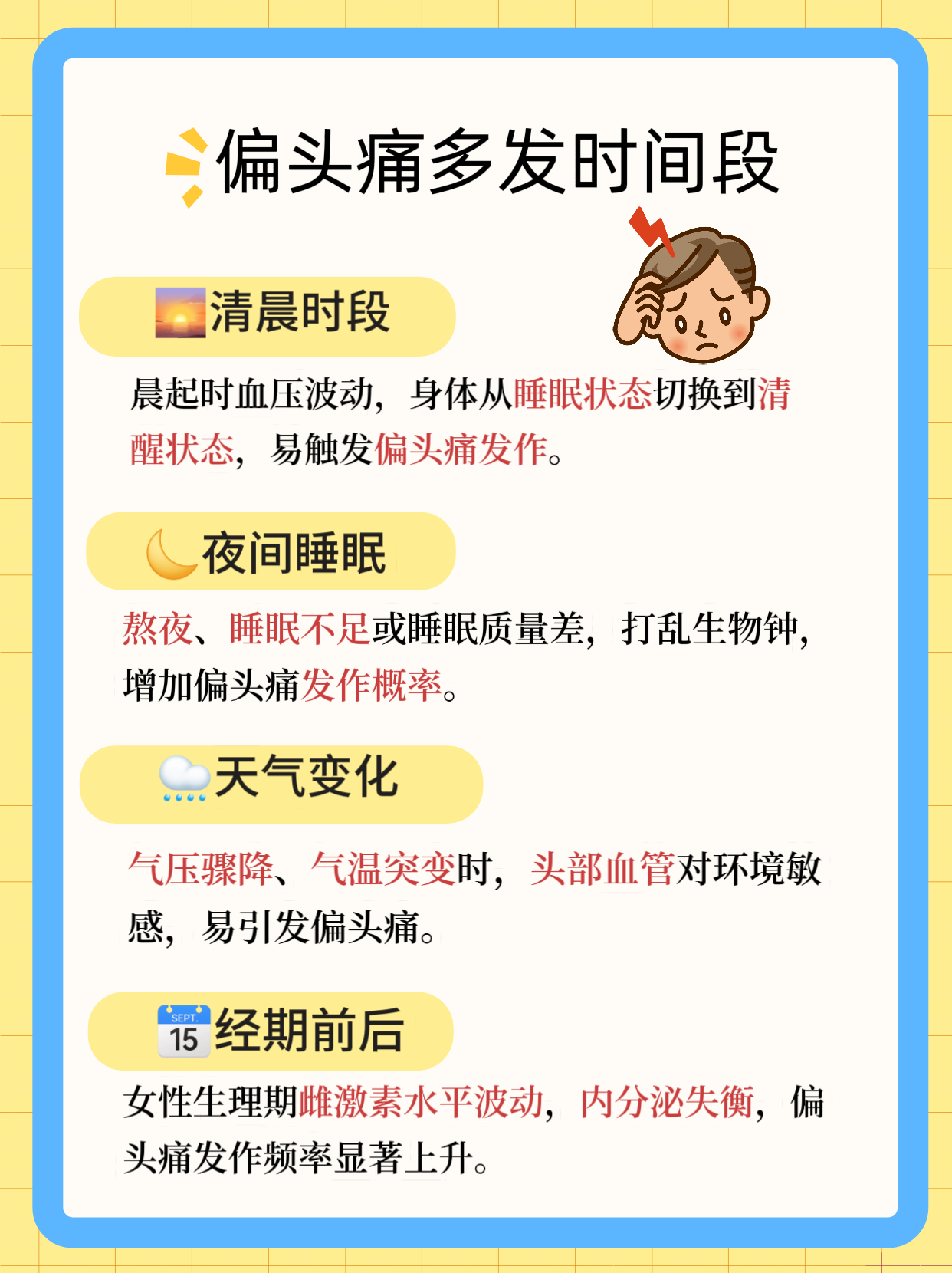 突然间偏头疼可能是由以下原因引起的脑部器质性病变脑出血通常在活动中发病,可能伴随肢体感觉障碍运动障碍等症状颅脑CT检查可明确诊断,需住入脑外科进行综合治疗脑梗死在安静状态下起病,同样可能出现躯体症状颅脑CT检查可确诊,需住入神经内科进行综合治疗原发性头痛疾病偏头痛发作。