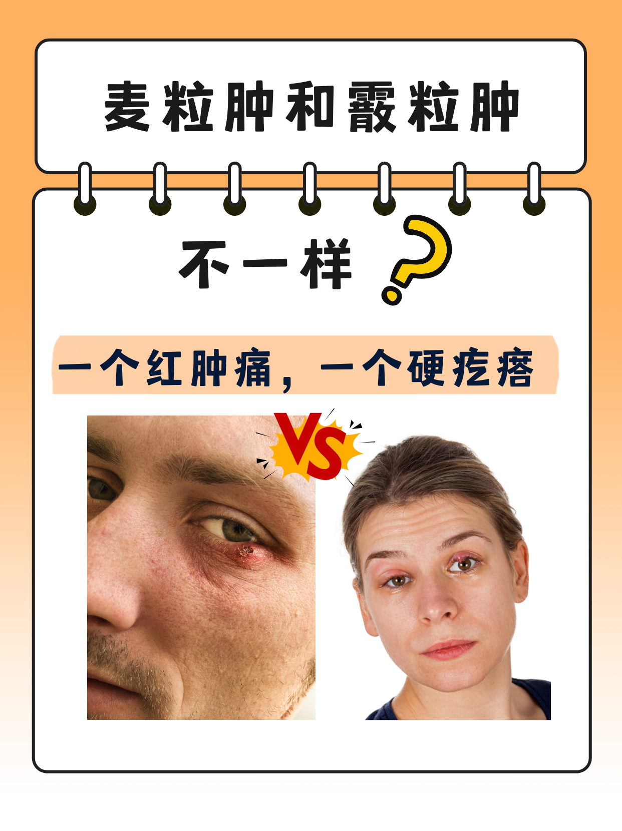 10、霰粒肿是睑板腺囊肿,由于脂类物质在Zeis腺和睑板腺内积存,导致睑板腺分泌阻滞引起的,挤压临近组织并引发慢性肉芽肿性炎症,多发于上眼睑,也可以是双眼睑同时发生,病程发展缓慢,一般可以自愈通常表现为眼睑皮下单个或多个界限清楚的肿块,不红不痛,无自觉症状,表面皮肤隆起与肿块无粘连,大小不一。