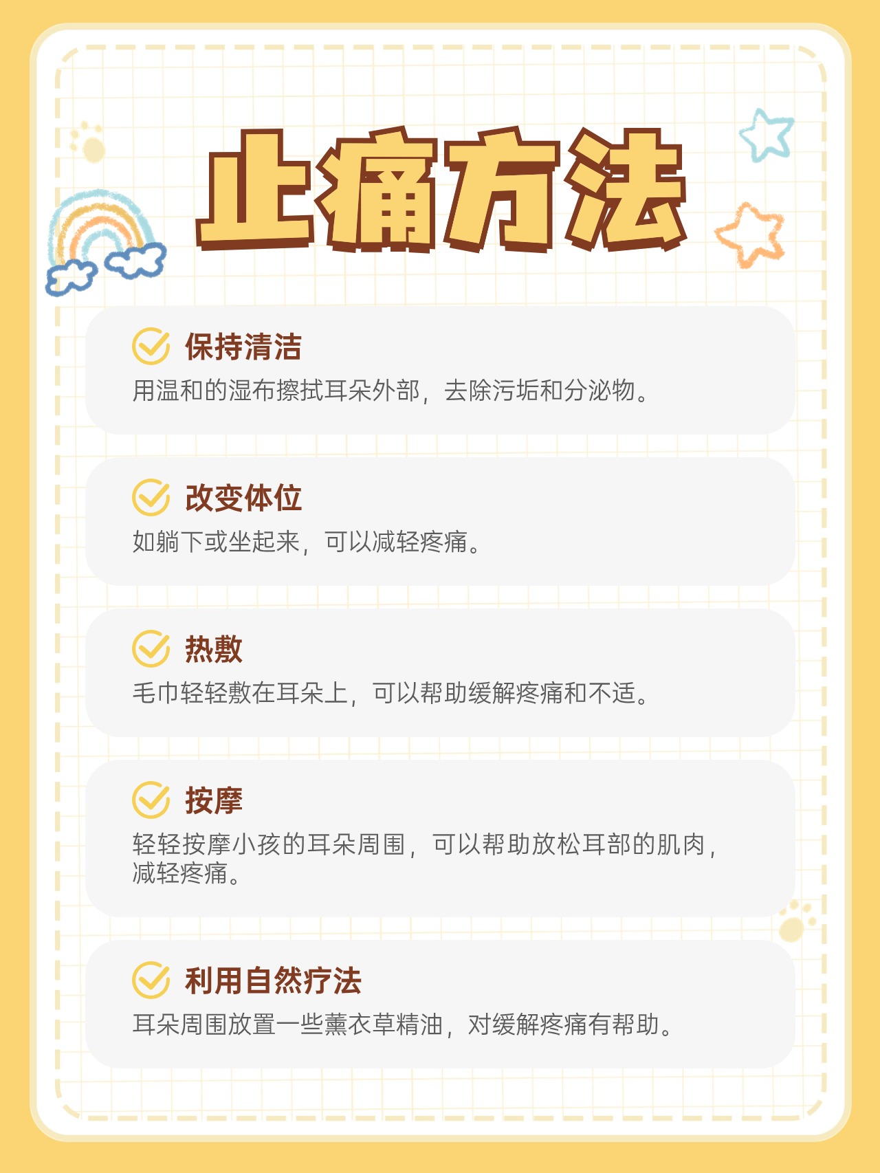 右耳朵里面痛的缓解方法需根据具体病因处理,常见原因及对应措施如下耵聍栓塞若因耳屎耵聍过多堵塞外耳道引发疼痛,切勿自行挖耳,以免损伤耳道或鼓膜可先使用碳酸氢钠滴耳液软化耵聍每日34次,每次23滴,待耵聍软化后前往医院耳鼻喉科,由医生通过专业器械清理若伴随听力下降,需及时;当右侧耳朵里面出现阵阵刺痛时,可采取以下措施进行解决首先应及时就医诊断刺痛可能由外耳道炎中耳炎耳道异物神经性疼痛或颞下颌关节紊乱等多种原因引起通过专业耳部检查如外耳道镜检鼓膜检查听力测试及影像学检查如CTMRI,可明确病因例如,外耳道炎可能伴随耳道红肿分泌物。