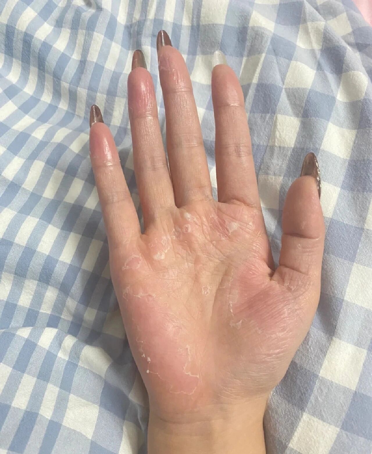 4手癣 手癣为真菌感染引起的一种皮肤病,常局限于一侧,伴瘙痒,角化过度型主要表现为皮肤角化过度,粗糙无汗,每到寒冷冬季皮肤皲裂,治疗宜用各种抗真菌外用药,重者可口服抗真菌药治疗手掌脱皮的方法 1维生素C擦手 维生素C具有很好的润肤效果,能够帮助缓解因为手掌皮肤过于干燥引起的脱皮,并且帮助。