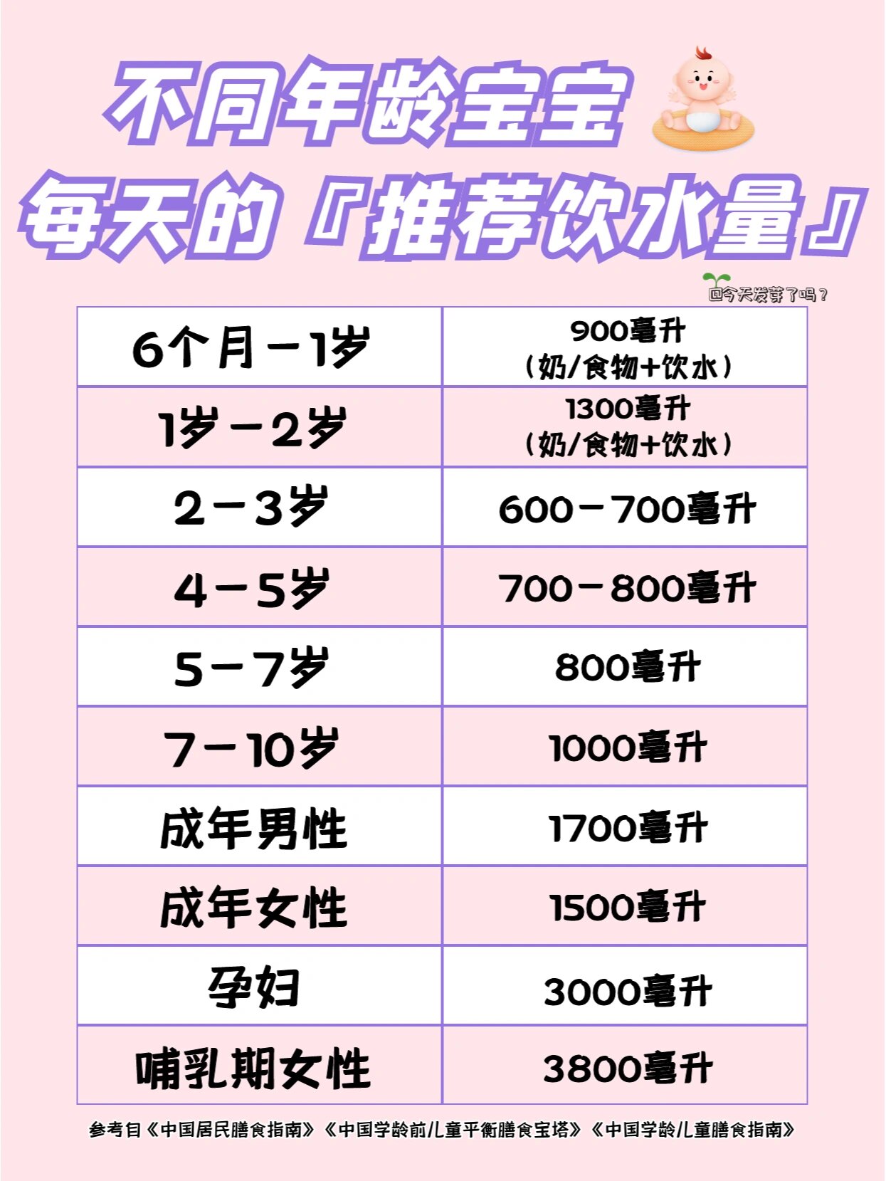 3、常人每天至少需要喝1500毫升水,大约8杯左右深圳市第二人民医院肾内科主任何永成博士指出,一般而言,人每天喝水的量至少要与体内的水分消耗量相平衡人体一天所排出的尿量约有1500毫升,再加上从粪便呼吸过程中或是从皮肤所蒸发的水,总共消耗水分大约是2500毫升左右,而人体每天能从食物中和体内新陈;成年人每天的适宜饮水量一般为6 8杯约2升 25升,但需根据个人情况调整具体分析如下身体状况影响水分需求不同健康状态的人群需针对性调整饮水量例如,肾脏疾病患者可能因肾功能受损需限制水分摄入,避免加重肾脏负担糖尿病患者因血糖波动易导致脱水,需根据血糖监测结果调整饮水量孕妇;一个健康的成年人每天适宜饮用的水量约为3000毫升,但需根据个体差异动态调整具体分析如下1 基础推荐量与个体差异3000毫升是针对健康成年人的普遍参考值,涵盖直接饮水及食物中的水分如蔬菜水果含水量较高但实际需求因人而异体质差异体重较大或代谢率较高者需水量可能增加健康状况。