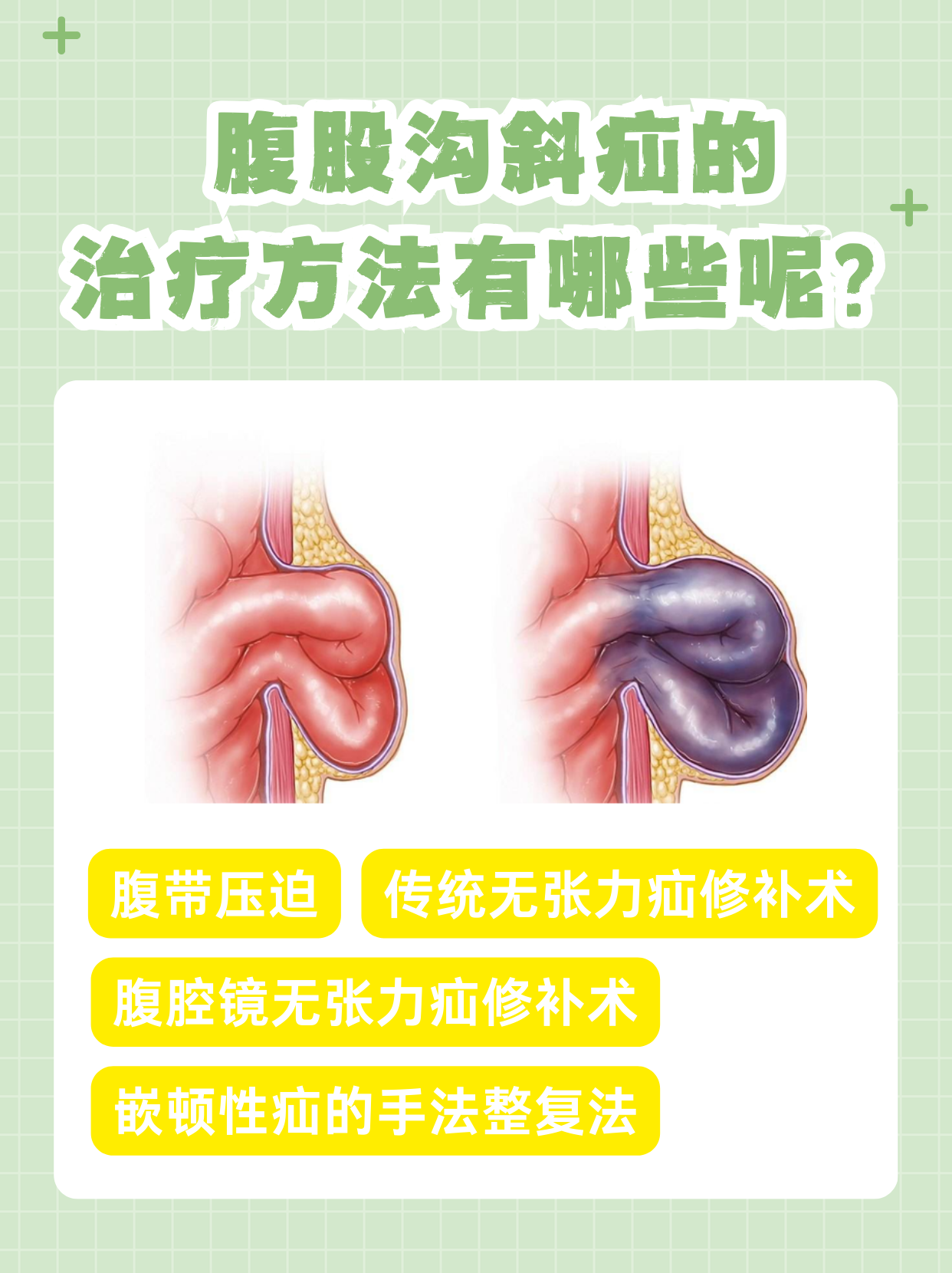 3、疝气的最佳治疗方法需根据患者个体情况综合判断,主要分为非手术治疗与手术治疗两大类,具体选择需结合年龄疝气类型症状及健康状况等因素非手术治疗适用于特定人群,如婴儿年老体弱者或手术禁忌者疝气带治疗通过外力压迫疝块回纳,防止突出并促进疝囊愈合,但需长期规范使用,且效果有限,仅作为临时或辅助手段中医治疗包括中药内服外用或针灸,旨;疝气的治疗需根据患者年龄及病情选择合适方案,具体如下1 1岁以下患儿观察等待为主对于年龄小于1岁的疝气患儿,通常不建议立即手术由于婴幼儿身体处于快速生长发育阶段,部分患儿的疝气可能随腹壁肌肉的强化而自行闭合此阶段需密切观察,避免剧烈哭闹便秘等增加腹压的行为,防止疝块嵌顿若1岁后。