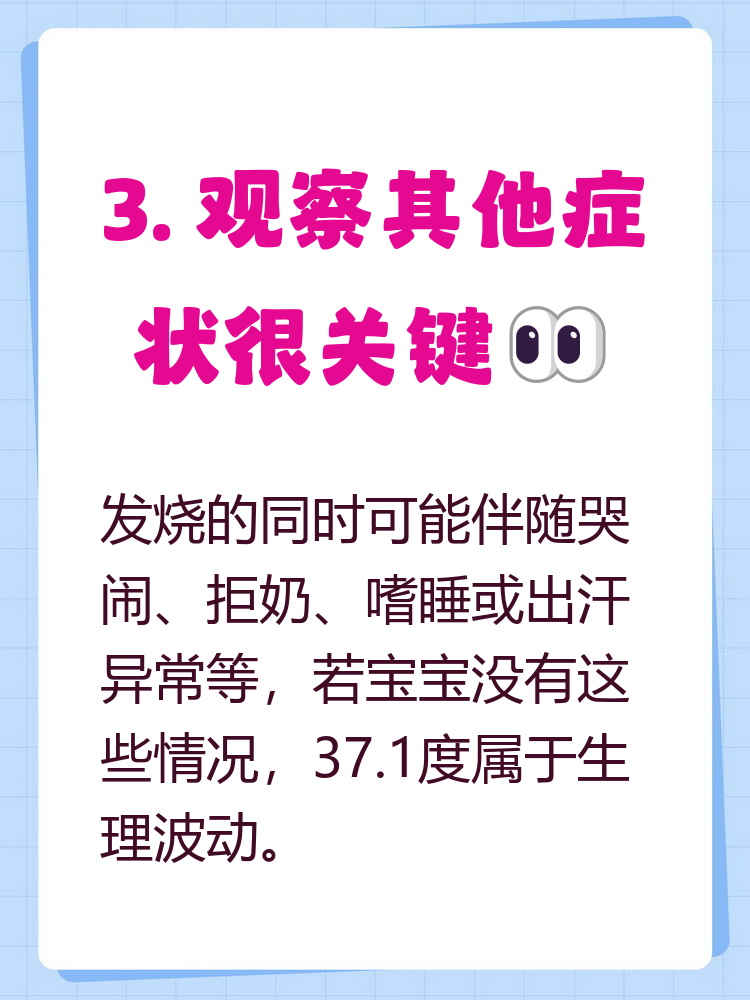 6、一个月大的婴儿体温372°C属于正常范围根据医学标准,一个月大婴儿的正常体温范围为362°C至373°C,372°C处于该区间内,无需过度担忧但需注意以下细节体温的动态监测婴儿体温可能因环境温度活动状态如哭闹进食包裹衣物厚度等因素波动建议在婴儿安静未进食或哭闹后1530。