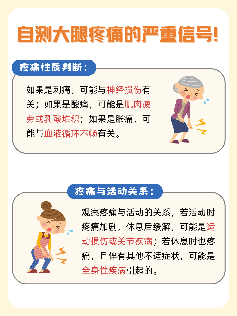 两条大腿酸痛可能由以下原因导致一肌肉或软组织损伤若近期有剧烈运动长时间站立或重体力劳动史,可能因肌肉过度使用或拉伤导致酸痛此类疼痛多表现为局部压痛活动后加重,休息后缓解例如运动员或搬运工因反复发力,可能引发股四头肌腘绳肌等肌肉群的劳损若未及时恢复,疼痛可能持续数日甚至更。