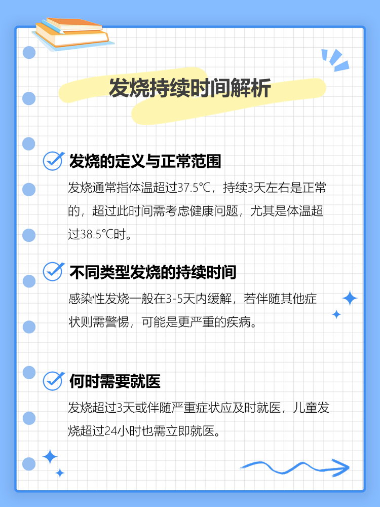 8、持续发烧五天有可能是病毒感染导致的感冒是日常生活当中最常见的上呼吸道感染性疾病,往往是由于病毒感染导致的由于病毒具有自限性,多数患者的症状持续5到7天后会痊愈持续发烧五天也有可能是细菌感染引起的儿童老年人以及患有基础疾病等体质相对较弱的人群,容易受到各种细菌的侵入导致炎症反应的。