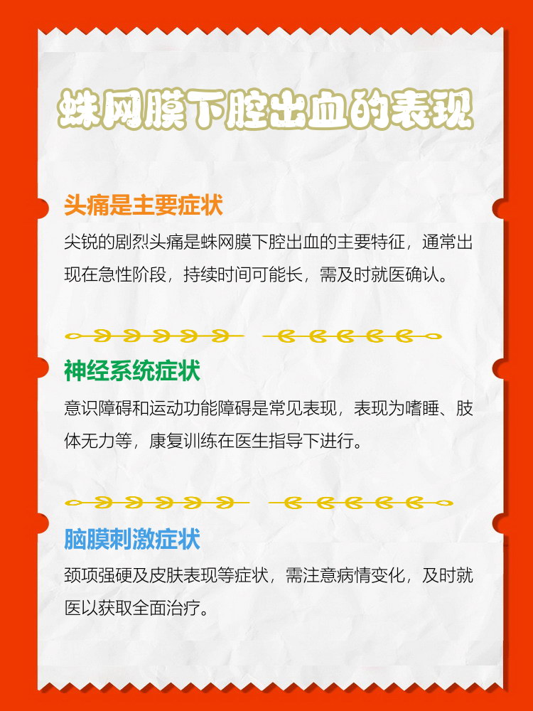 诊断与治疗诊断依赖头颅CT急性期敏感度高或腰椎穿刺检测脑脊液红细胞治疗需紧急控制颅内压预防血管痉挛如使用尼莫地平及针对病因处理如动脉瘤夹闭或介入栓塞继发性出血需同时处理原发脑实质病变预后原发性蛛网膜下腔出血的死亡率较高,尤其是动脉瘤破裂者,若未及时治疗,约。