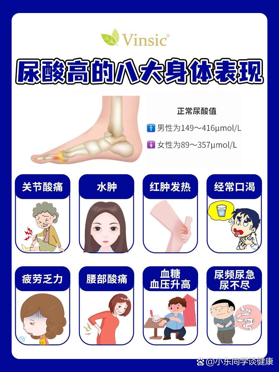 2、尿酸高的原因主要分为生成过多和排泄减少两方面一尿酸生成过多1嘌呤摄入过多日常饮食中若大量摄入高嘌呤食物如动物内脏海鲜浓肉汤等,会导致体内嘌呤含量大幅增加,经代谢后产生过量尿酸不同年龄段对嘌呤的耐受程度存在差异青壮年代谢能力较强,但随年龄增长,代谢功能逐渐衰退,即使;其中,酒精会抑制尿酸排泄,果糖则通过促进嘌呤合成增加尿酸生成遗传因素不可忽视部分患者因基因变异导致嘌呤代谢酶活性异常或肾脏排泄功能缺陷,易出现高尿酸血症药物影响也需关注某些药物如阿司匹林环孢素等会干扰尿酸代谢,导致血尿酸水平升高尿酸高的患者需及时就医,明确病因后针对性治疗;尿酸高的原因主要分为尿酸生成过多和尿酸排泄减少两类,具体如下尿酸生成过多人体内的尿酸主要来源于嘌呤代谢当自身合成嘌呤过多时,超出肾脏的排泄能力,会导致血尿酸水平升高此外,长期大量摄入高嘌呤食物如动物内脏海鲜红肉等会显著增加外源性嘌呤的摄入,进一步加剧尿酸生成例如,每100克;人得尿酸高的原因主要分为尿酸生成过多排泄减少以及其他因素尿酸生成过多体内嘌呤代谢酶缺陷是重要原因之一某些人因基因突变导致嘌呤代谢酶功能异常,使嘌呤合成增加,进而尿酸生成过量此外,高嘌呤饮食会直接加剧这一过程,如长期大量摄入动物内脏海鲜肉类等富含嘌呤的食物,会显著提升血尿酸水平;造成尿酸高的原因主要有以下几点遗传因素研究发现,高尿酸血症和痛风有明显的家族聚集现象原发性痛风约有10%~20%有家族史,患者的近亲中15%~25%有高尿酸血症这可能与遗传因素,特别是与嘌呤代谢有关的限速酶的基因变异有关,同时也受到环境因素如同一家族的生活习惯相同的影响年龄与。