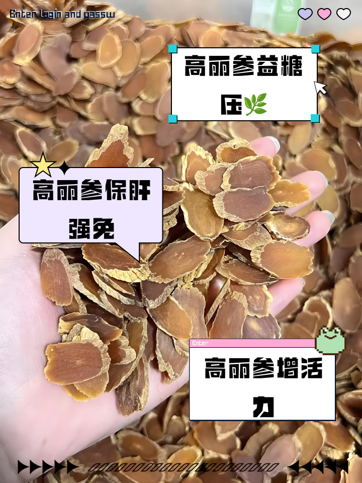 3、1参汤总的来说就是隔水蒸,把高丽参切片,然后加入枸杞百合放入炖盅内,加多半炖盅水,隔水蒸,大火开锅后,小火蒸一个小时左右一般可以蒸三至四回2直接煎可以把高丽参整只或切片,放入药罐中,浸泡30分钟以后,大火烧开后转小火40分钟这种做法比较浪费,适合急需进补的人3泡茶;一常见食用方法1含服将高丽参切成薄片,每次取12片放入口中含服此方法可使有效成分通过口腔黏膜缓慢吸收,适用于日常保健或缓解疲劳2泡茶将高丽参薄片或粉末用开水冲泡,代茶饮用具有提神醒脑消除疲劳的作用,适合办公或学习时饮用3炖煮与鸡肉排骨等食材同炖,制成滋补汤品高丽参的活性成分;高丽参的多种食用方式高丽参是一种多用途的滋补品,其食用方法多样首先,对于短期滋阴补肾,可以将其与红枣和生姜一同炖汤取2030克高丽参,搭配适量水约300毫升3颗红枣和3片生姜,放入药罐中,用文火炖煮3小时每天分12次服用,对于15岁以下的儿童,剂量减半长期服用可增强效果另一;高丽参的最佳食用方式有以下几种隔水蒸制参汤做法将高丽参切片,加入枸杞百合等配料,放入炖盅内,加入多半炖盅的水,然后隔水蒸制大火开锅后,转小火蒸一个小时左右优点这种方法能够充分保留高丽参的营养成分,同时枸杞和百合的加入还能增强滋补效果直接煎服做法将高丽参整只或。