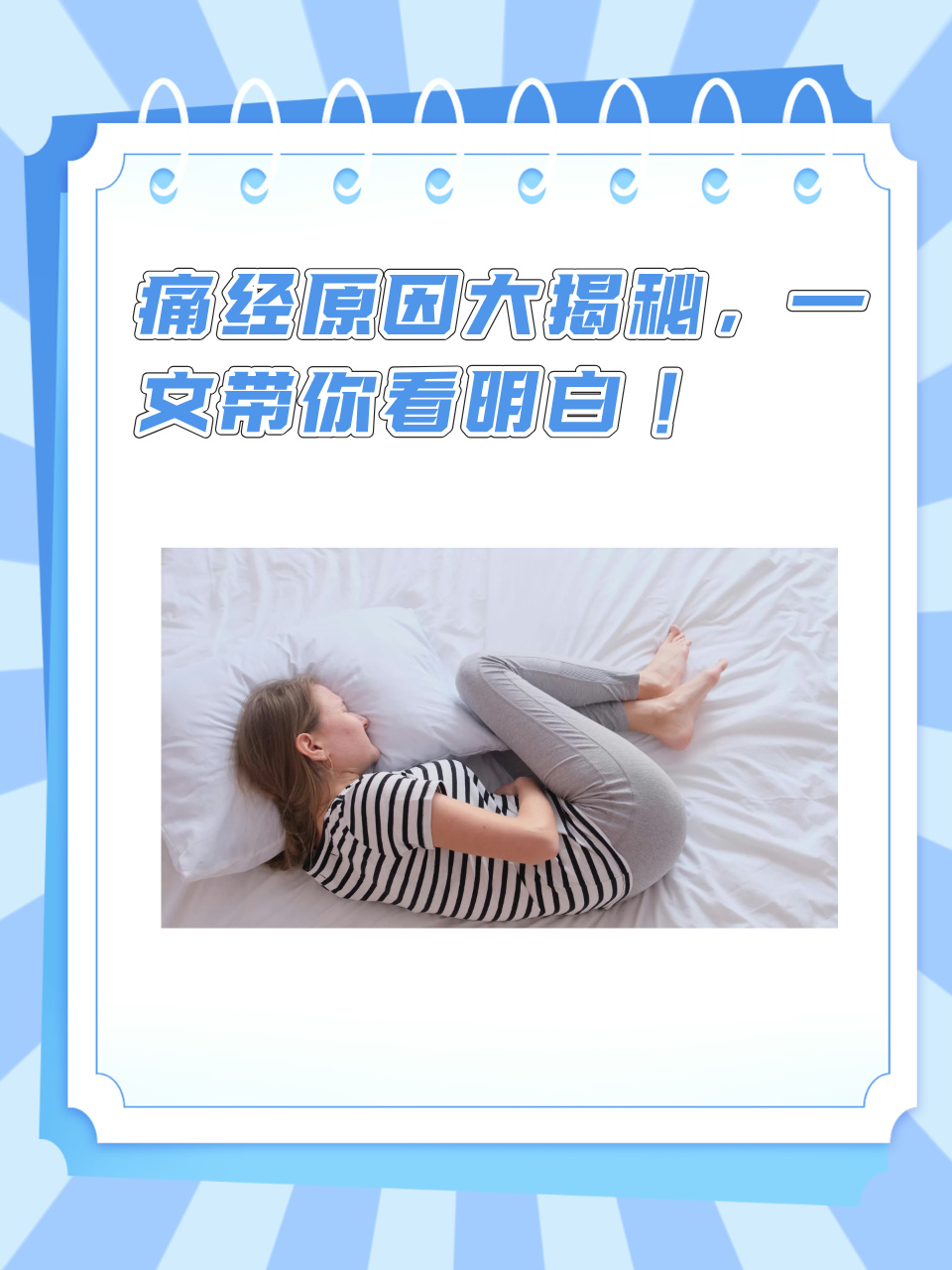 2导致女性不孕不育根据调查,大概有半数以上的不孕不育患者中有过痛经的经历所以痛经应该及时去医院做检查,以免影响自己的生育能力3导致女性气血失调长期痛经患者面色灰暗,皮肤干燥,并伴有色斑痤疮等面部问题4潜在疾病痛经的危害可能伴随着潜在的疾病,如子宫疾病盆腔炎子宫内膜炎。