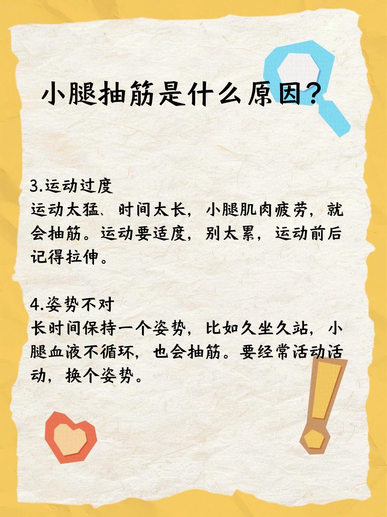 小腿经常抽筋可能由以下原因引起1寒冷刺激夜间睡眠时腿部暴露于冷空气,或游泳时水温过低,会引发肌肉突然收缩,导致抽筋寒冷环境使血管收缩,局部血液循环受阻,肌肉代谢产物堆积,易诱发痉挛2过度疲劳长途步行剧烈运动或长时间体力劳动后,肌肉持续收缩导致疲劳此时若伴随电解质失衡如低钾低。