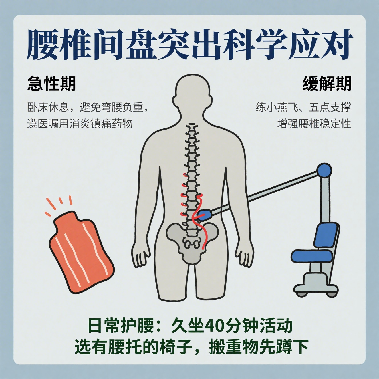 腰椎间盘突出的治疗和保养需结合症状严重程度年龄及健康状况综合制定方案,具体如下一治疗方法1非手术治疗急性发作期需卧床休息,减轻脊柱压力物理治疗包括热敷冷敷按摩牵引等,可缓解疼痛和肌肉紧张药物治疗以非甾体类抗炎药如布洛芬和肌肉松弛剂为主,减轻炎症和肌肉痉挛注射治疗通过。