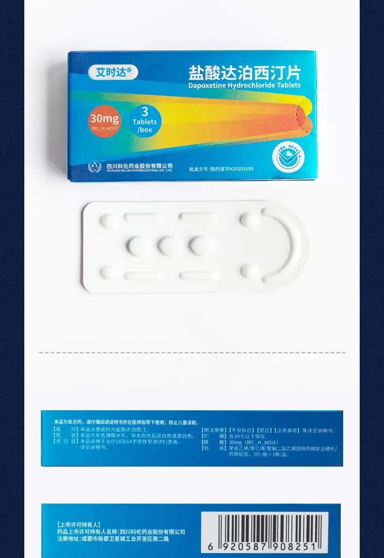 临床上用于治疗早泄的药物主要包括以下几种,但需在医生指导下使用1盐酸达泊西汀片作为唯一获批专门治疗早泄的药物,属于选择性5羟色胺再摄取抑制剂SSRI其通过增加神经突触间隙中5羟色胺的浓度,抑制射精反射,从而延长射精潜伏期通常在性行为前13小时服用,起效快,但可能伴随恶心头晕。