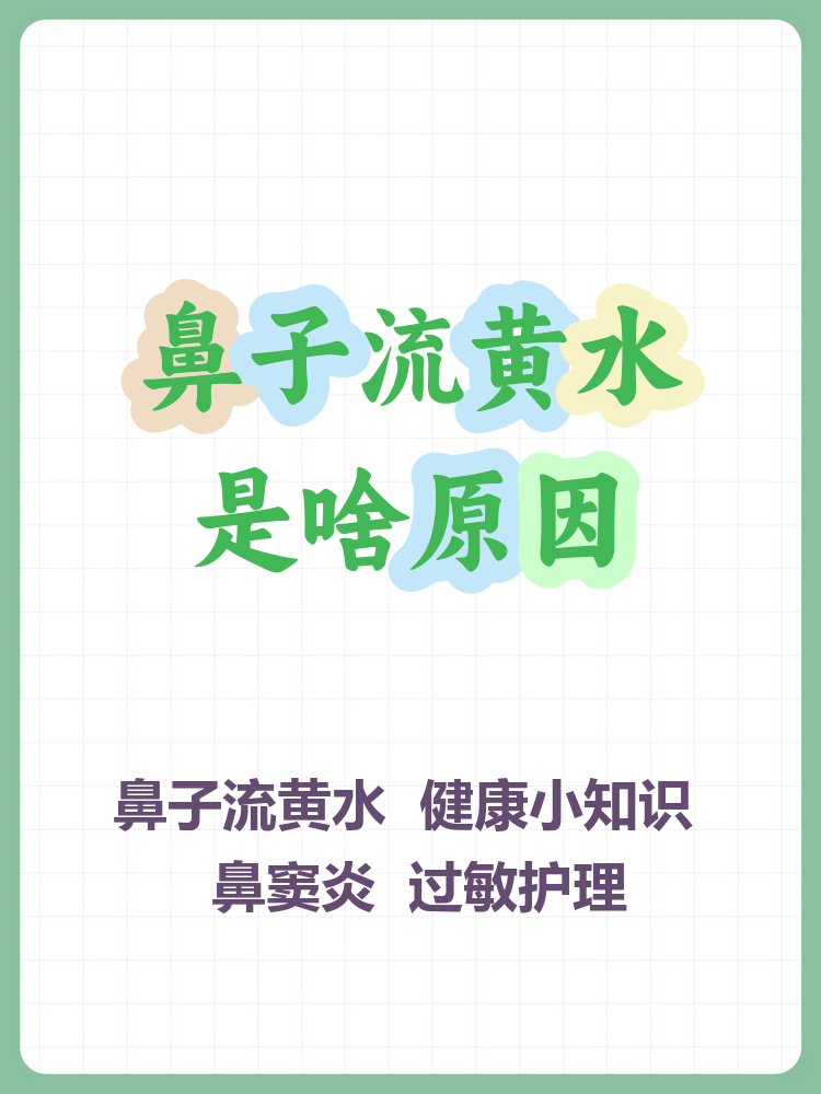 4、鼻子里流黄水可能由以下原因导致,需根据症状轻重区分处理一症状较轻时肺热或环境刺激若流黄水症状不显著,且无其他明显不适,通常与肺热或环境刺激有关1肺热表现中医认为,肺热会导致鼻腔黏膜分泌物增多,可能因饮食辛辣作息不规律或情绪波动引发2环境刺激空气干燥长期抽烟饮酒过量;鼻部流黄水一般不考虑癌,有两个可能性,一慢性鼻窦炎急性发作,这是由于鼻窦黏膜的非特异性炎症感染,常常是上呼吸道继发感染,患者出现黄鼻涕鼻塞头痛牙痛颜面部肿胀等相关症状,需要检查鼻窦CT,明确诊断在急性期可以口服青霉素类药物进行治疗,比如头孢克肟阿莫西林或者罗红霉素以及鼻腔;鼻子流黄水表明有疾病,但也不能说是大病鼻子流黄水常见于鼻窦囊肿鼻部炎症或者鼻窦炎一般鼻子流黄水还伴有其它症状,如头胀头闷头痛,一般要考虑手术治疗,做功能性鼻内镜手术如果是单纯流黄水没有其它症状,也可以先保守治疗,如做鼻腔冲洗消炎,改善鼻腔通气,或引流等方面治疗如果鼻子;鼻子里流出黄水多数情况并非大病,但少数情况可能与严重疾病相关常见非大病情况鼻窦囊肿破裂时,囊液经鼻窦开口流入鼻腔,表现为清亮黄水,通常无需特殊处理,观察是否反复即可上呼吸道感染恢复期,鼻腔炎性分泌物可能呈淡黄色,随感冒痊愈自然消失过敏性鼻炎患者接触过敏原后,鼻腔分泌物可能转为淡黄。