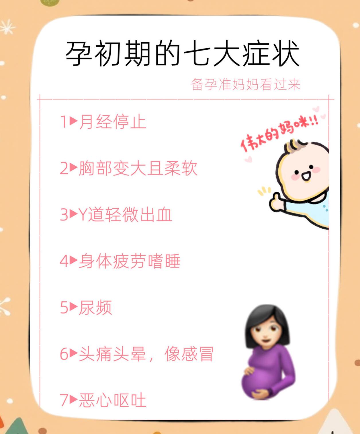 在怀孕后,女性一般会表现出嗜睡的症状,并且很容易疲倦,做什么事都没有精神#xF922呕吐在怀孕6周以上时,女性很容易出现呕吐的现象,尤其空腹早晨时较为明显,并且嗅觉变得极为灵敏,闻到恶心的气味也可能引起呕吐,孕妇不必担心,这是正常现象#xF6BD尿频怀孕初期,孕妇会常常想去厕所,但又尿不干净,别担心,这是因为子宫在。