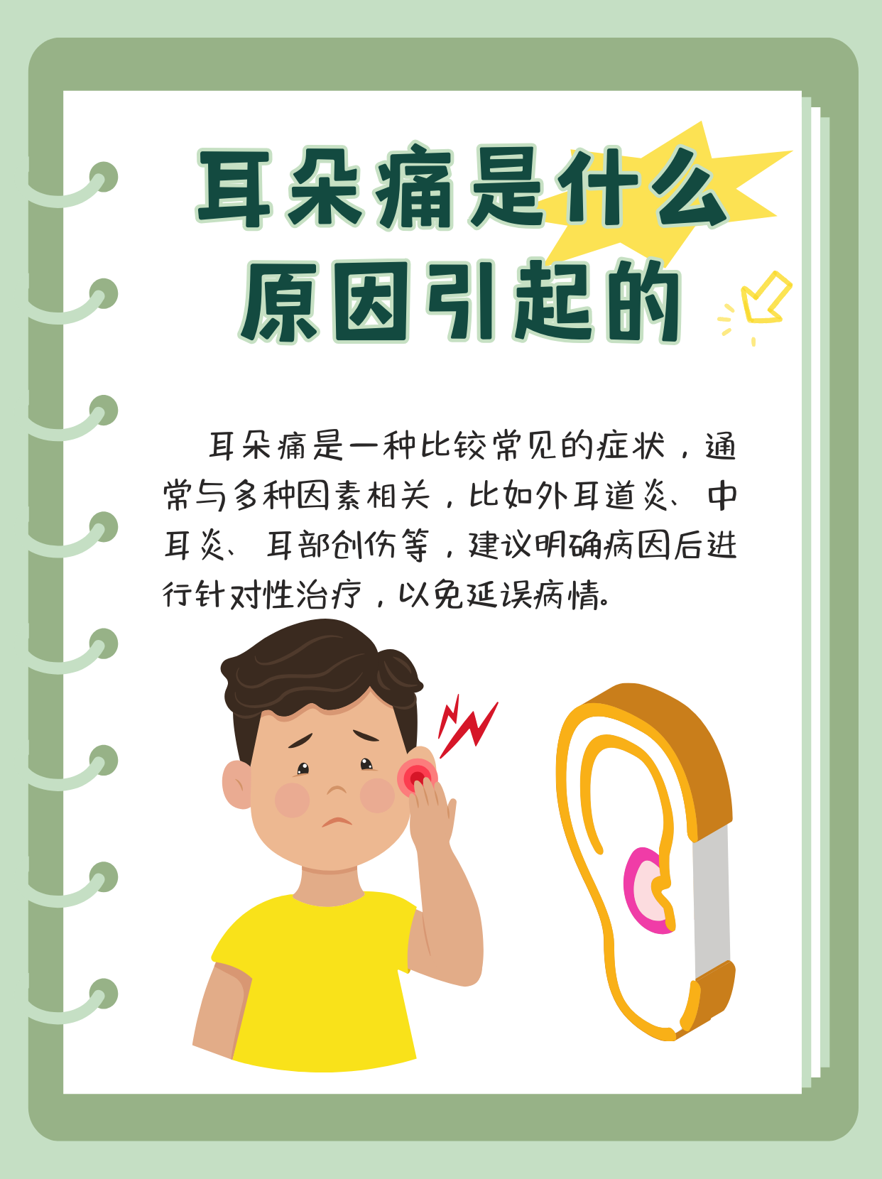 耳朵根部痛可能由以下原因引起1耳部感染外耳道炎中耳炎等炎症是常见病因外耳道炎多由细菌或真菌感染引发,表现为耳道红肿疼痛中耳炎则因中耳腔内炎症扩散,导致耳根部牵涉性疼痛,常伴听力下降或耳流脓2耳部损伤外力撞击拉伤或挫伤可能直接损伤耳部组织,引发疼痛例如掏耳过度导致耳道;耳根下面疼可能由中耳炎扁桃体炎或三叉神经痛引起,具体原因及表现如下中耳炎耳内炎症可能导致耳根疼痛初期表现为耳朵深处疼痛,随着炎症加重,疼痛可蔓延至耳根,甚至波及腮帮若未及时治疗,炎症持续发展会导致疼痛范围扩大,患者常伴有耳内胀痛感,吞咽或咀嚼时可能加重扁桃体炎扁桃体位于耳根与;耳根疼痛可能由以下几种原因引起1中耳炎相关疼痛急性化脓性中耳炎和分泌性中耳炎是常见病因炎症直接压迫鼓膜鼓膜对疼痛敏感,可引发剧烈耳痛,疼痛可能放射至耳根区域此类疼痛通常伴随耳流脓听力下降或耳闷胀感,需通过耳内镜检查确诊2外耳道炎症外耳道炎如“游泳者耳”因外耳道。