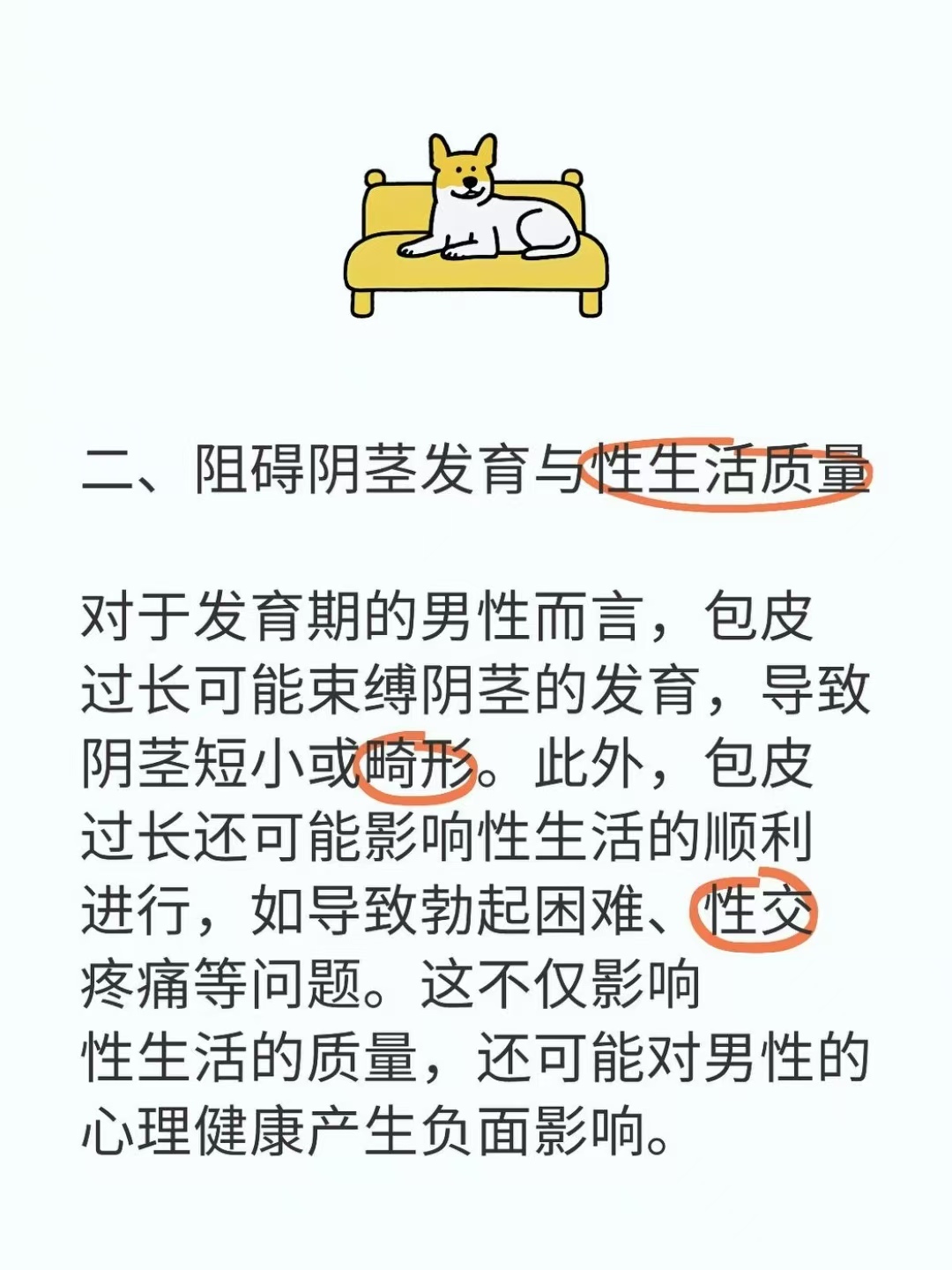 包皮过长主要会产生以下两方面影响一性功能方面可能引发早泄龟头长期被包皮包裹,缺乏与外界的直接接触和摩擦刺激,会导致其敏感性异常增高当进行性行为时,过高的敏感度会使男性对性刺激的反应阈值降低,难以有效控制射精反射,从而引发早泄问题早泄不仅会降低性生活质量,还可能对男性的心理健康。