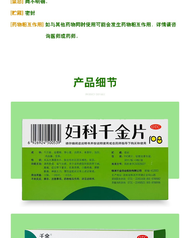 16、湿热瘀阻所致的带下病症状包括带下量多,色黄质稠,臭秽,小腹疼痛,腰骶酸痛,神疲乏力等慢性盆腔炎对于慢性盆腔炎患者,妇科千金片有助于改善相关症状宫内膜炎和慢性宫颈炎对于这两种疾病,妇科千金片在出现上述证候时也有一定的治疗效果注意事项 在使用妇科千金片时,应避免辛辣油腻的。