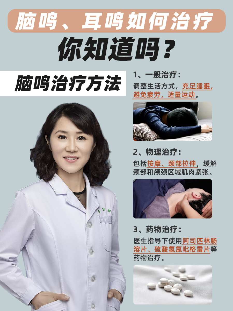 放松心情脑鸣有时可能与心理压力有关因此,保持心情愉悦放松心态对于缓解脑鸣症状也有一定帮助综上所述,脑鸣的治疗需要综合考虑病因症状及个人体质等因素,采取中西医结合药物治疗与生活调理相结合的方法在治疗过程中,应保持积极乐观的心态,配合医生的治疗建议,以期达到最佳的治疗效果。