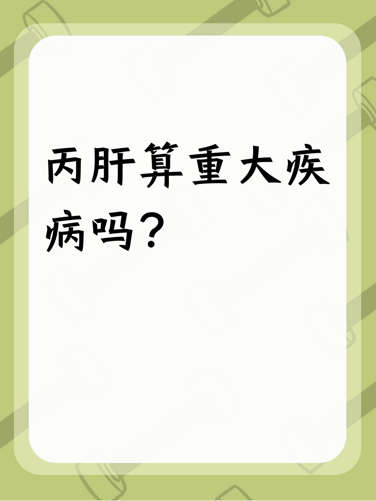 丙肝是由丙型肝炎病毒感染引起的病毒性肝炎早期情况不严重在丙肝病毒感染的早期,部分患者的免疫系统能够自行清除病毒,实现自愈无症状早期丙肝往往没有明显症状,容易被忽略后期发展严重若丙肝病毒未被清除,将终身携带,并缓慢但坚定地发展为肝硬化严重症状中后期丙肝可能出现肝腹水上。