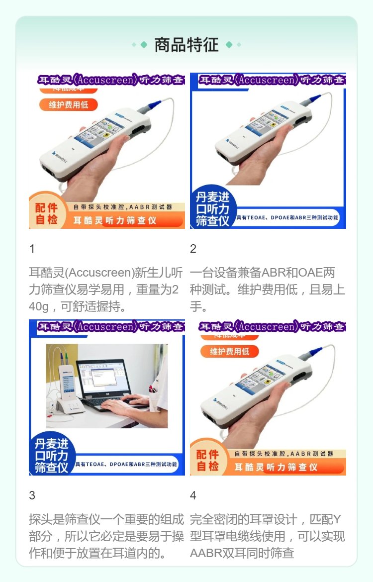 新生儿听力筛查主要检查的是耳声发射OAE,部分情况下会结合听性脑干诱发电位ABR进行诊断具体内容如下耳声发射OAE定义一种产生于耳蜗,经听骨链及鼓膜传导释放入外耳道的音频能量检测范围反应从外耳中耳到内耳外毛细胞的听觉通路完整性,但无法检测内毛细胞听神经及以上的听觉通路;耳声发射检测是一种无创的客观检查方法,通过将特制探头放置于外耳道内,记录耳蜗对声刺激产生的声能反应即耳声发射信号若信号正常,提示耳蜗功能正常若未检测到信号,则需进一步排查听力障碍新生儿听力筛查的核心目的包括以下两点1 早期发现听力障碍新生儿期是语言发育的关键阶段,若存在先天。