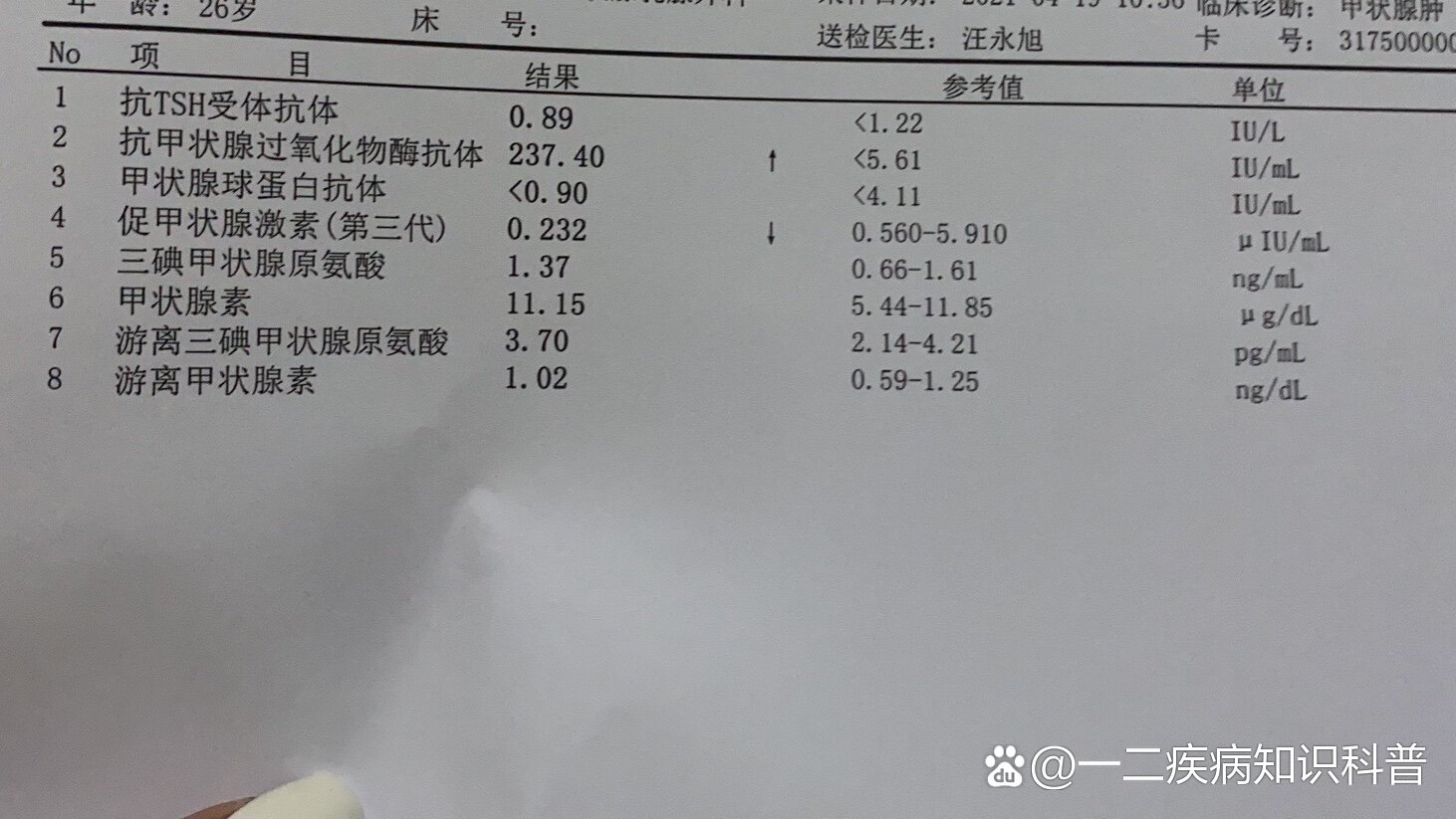 13、甲状腺过氧化物酶抗体TPOAb水平升高,通常提示存在自身免疫性甲状腺疾病,如慢性淋巴细胞性甲状腺炎,即桥本氏甲状腺炎此外,亚急性淋巴细胞性甲状腺炎也常伴有此抗体的升高然而,TPOAb升高并不总是意味着甲状腺功能异常,有时它仅表明甲状腺存在自身免疫反应,甚至在其他自身免疫性疾病如1型糖尿病Addison。