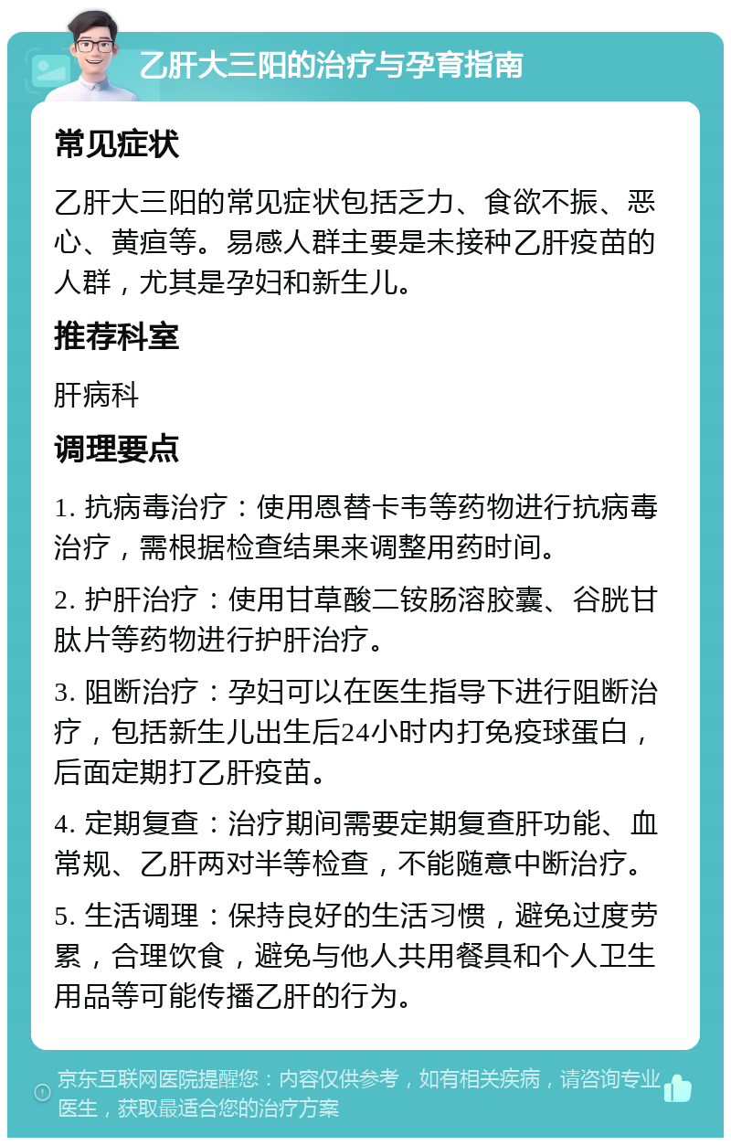 预防乙肝的核心是阻断传播途径接种乙肝疫苗是首要手段,可刺激人体产生抗体,形成长期保护同时需避免高危行为,如共用注射器无保护性行为等若已感染乙肝,需及时就医,通过抗病毒药物如恩替卡韦替诺福韦控制病毒复制,延缓肝纤维化肝硬化等并发症的发生总结乙肝的传播与遗传无关,其;父亲有乙肝一般不会遗传给下一代具体原因及预防措施如下乙肝的本质与传播途径乙肝是由乙肝病毒HBV感染引起的传染病,而非遗传病其传播途径主要包括血液传播性接触传播和母婴传播遗传病是由基因异常导致的疾病,而乙肝的传播依赖病毒在人际间的接触传播,二者机制完全不同因此,父亲有乙肝不。