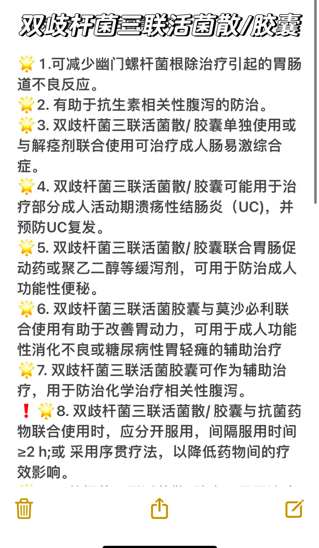 7、疗程一般为10~14天,需严格遵医嘱完成,避免自行停药导致治疗失败二益生菌辅助治疗益生菌如双歧杆菌四联活菌片枯草杆菌二联活菌颗粒可调节肠道菌群,缓解腹胀腹泻等症状但需注意,益生菌仅为辅助手段,不可替代药物,需与四联疗法联用三饮食调整饮食需以清淡易消化为主,避免辛辣。