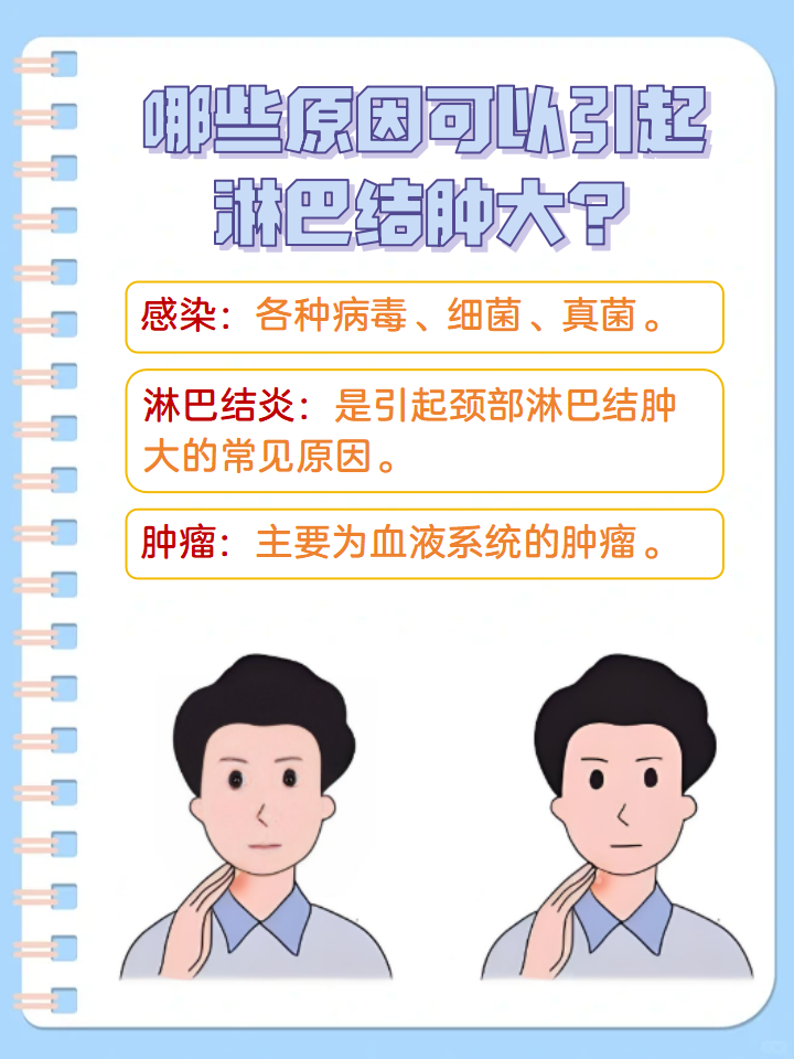 6、小孩淋巴结肿大主要由感染性和非感染性因素引起,具体原因如下一感染性因素1病毒感染EB病毒感染可引发传染性单核细胞增多症,导致颈部腋窝腹股沟淋巴结肿大,直径可达13厘米,常伴发热咽峡炎肝脾肿大及外周血异型淋巴细胞增多风疹病毒感染初期表现为上呼吸道感染,随后出现淡红色斑丘疹。