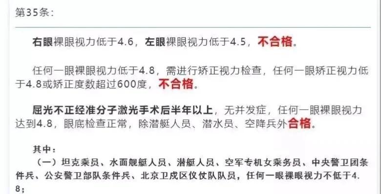 近视眼是否可以当兵需根据具体军种岗位自身眼部情况及年龄等因素综合判断,符合标准且经正规矫正后可能满足要求具体分析如下一不同军种对视力的具体要求 陆军普通士兵要求右眼裸眼视力不低于46,左眼不低于45矫正视力每眼不低于48且矫正度数不超过600度特殊岗位如坦克乘员因操作。