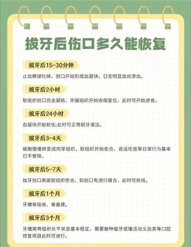一般情况下,拔牙2小时后可开始吃温凉流食,但恢复正常饮食需根据个人情况逐步过渡,通常需要数天至一周不等具体恢复时间受以下因素影响创口大小与位置创口较大或位置特殊如阻生智齿拔除时,恢复时间可能延长此类拔牙常伴随更明显的肿胀和疼痛,需更长时间等待组织愈合个人体质差异体质较强。