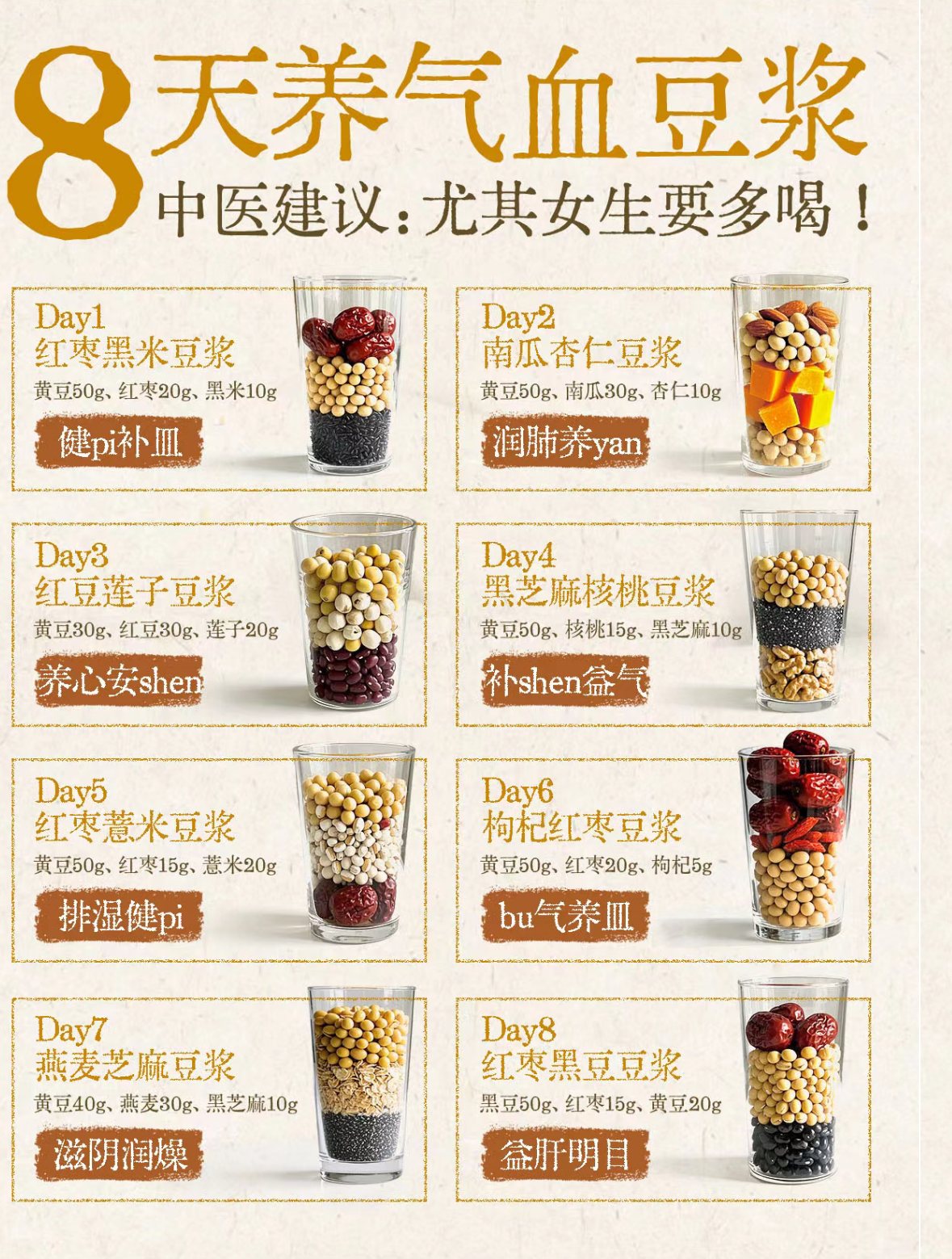 来大姨妈期间可以喝豆浆具体原因如下豆浆富含优质植物蛋白,其蛋白质含量与动物蛋白相近,且更易被人体吸收月经期间,女性因失血可能导致蛋白质流失,适量饮用豆浆可补充营养,帮助维持身体机能豆浆中的植物性雌激素如大豆异黄酮具有双向调节作用,既能补充体内雌激素不足,又可抑制雌激素过量;月经期间通常可以喝豆浆,但需结合个体情况调整,且无明确医学禁忌豆浆的营养价值与安全性豆浆作为植物蛋白饮品,富含蛋白质维生素如B族维生素矿物质如钙镁及异黄酮等成分对于多数女性,月经期饮用豆浆不会干扰激素水平或加重身体负担,反而可能通过补充营养缓解疲劳感其含有的异黄酮虽属。
