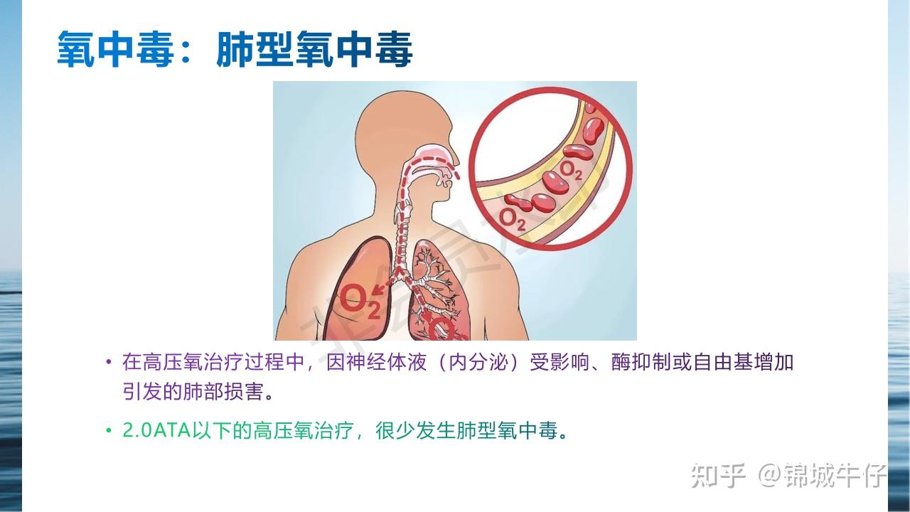 氧中毒的临床表现主要分为急性氧中毒和慢性氧中毒两大类急性氧中毒中枢神经系统症状较为突出,包括恶心呕吐头痛眩晕,严重时可出现惊厥,甚至昏迷或死亡肺部症状表现为咳嗽呼吸困难,可能进展为肺水肿,导致呼吸功能急剧下降眼部损害以视网膜病变为主,可能引发视力下降,甚至失明慢性氧中毒。