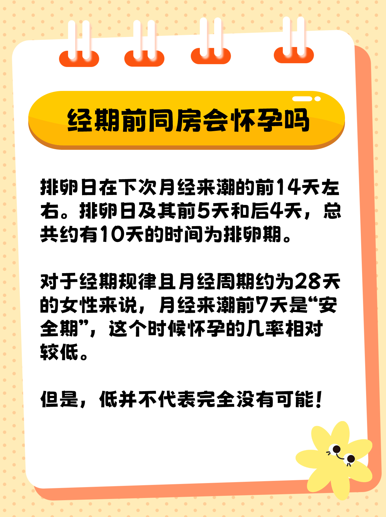 快来月经前3天同房有怀孕可能,但概率相对较低首先,从月经周期与排卵的关系来看对于月经周期规律的女性,排卵日通常在下次月经来潮前14天左右,快来月经前3天多处于黄体期后期此时,卵子一般已排出一段时间,若未受精,黄体逐渐萎缩,雌激素和孕激素水平下降,子宫内膜开始脱落形成月经,正常情况下。