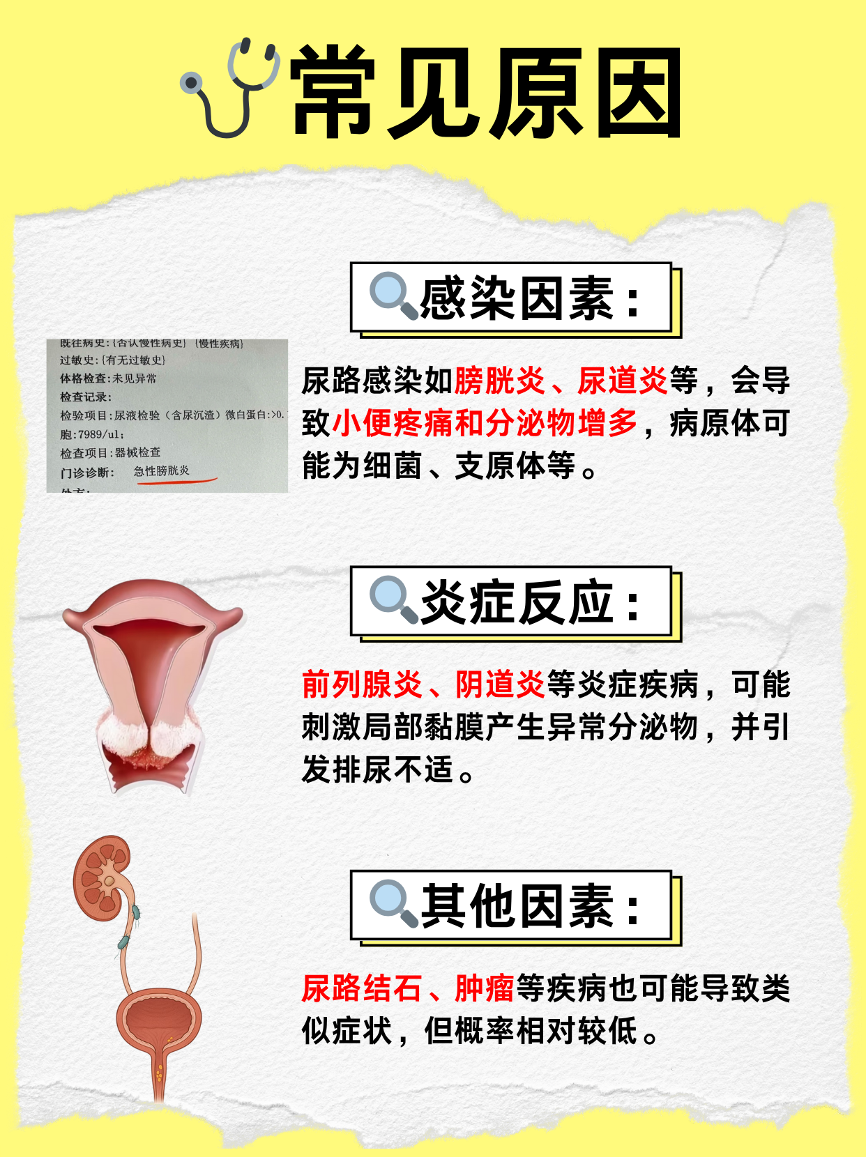 11、小便时尿道刺痛可能由感染性或非感染性因素导致,也可能与特殊人群的生理特点相关,具体如下一感染性因素 尿道炎淋菌性尿道炎由淋病奈瑟菌感染引起,多通过性接触传播男性症状包括尿道脓性分泌物尿频尿急,女性症状较轻,可能仅有尿道刺痛或少量分泌物,但可能成为无症状传染源非淋菌性尿道。