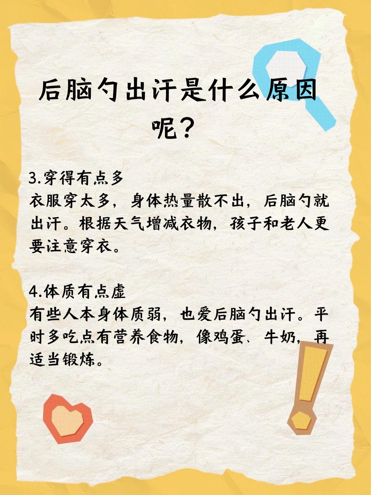 易出汗不一定是肾虚出汗的原因可分为生理性和病理性两大类生理性出汗多由环境或行为因素引发,如高温环境剧烈运动进食辛辣热饮或情绪紧张时,机体通过排汗调节体温此类出汗通常无伴随症状,脱离诱因后即可缓解病理性出汗需警惕潜在疾病,常见病因包括1内分泌疾病如甲状腺功能亢进症,因甲状。