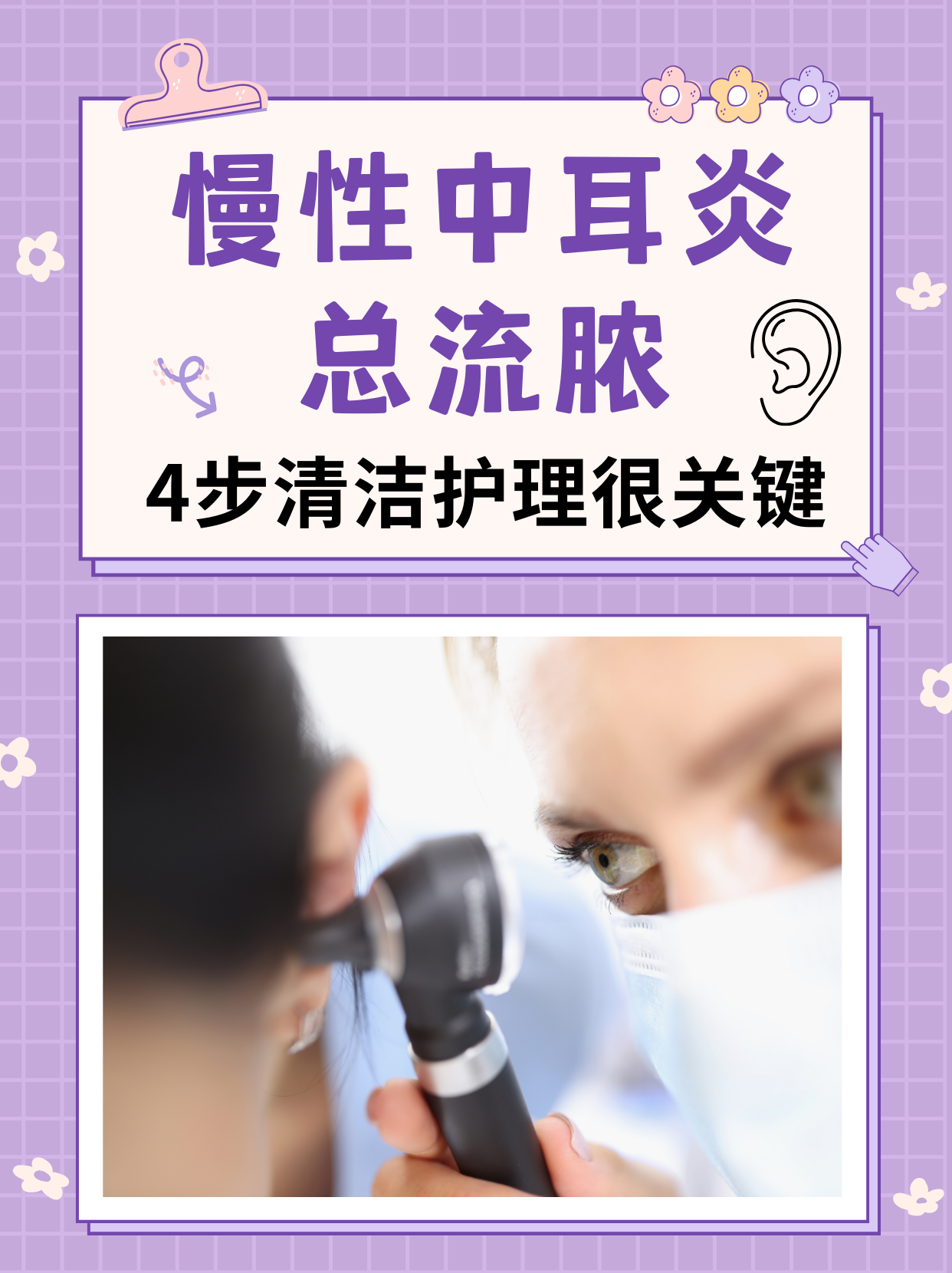 5、脓液较少且听力基本不受影响诊断这通常是外耳道炎的表现处理避免抠耳朵和耳朵进水,这样有助于缓解症状并可能实现自愈脓液较多且不断向外流,伴有听力下降诊断这可能是化脓性中耳炎的表现,通常伴有鼓膜穿孔处理药物治疗使用口服抗生素和抗生素滴耳液联合治疗,以控制感染并消除脓液手。