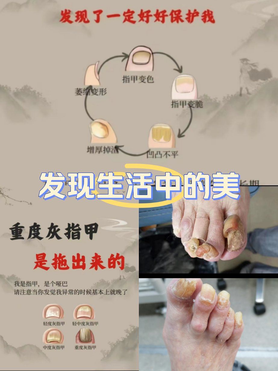 4、真菌感染灰指甲灰指甲是导致脚趾甲变厚发黄易碎的常见原因,由皮肤癣菌等真菌感染引起确诊需通过真菌镜检或培养,若结果为阳性,可外用抗真菌药膏如特比萘芬乳膏或口服药物如伊曲康唑严重者需手术拔除病甲治疗期间需保持足部干燥,避免共用鞋袜银屑病银屑病可能累及指甲,导致甲板。