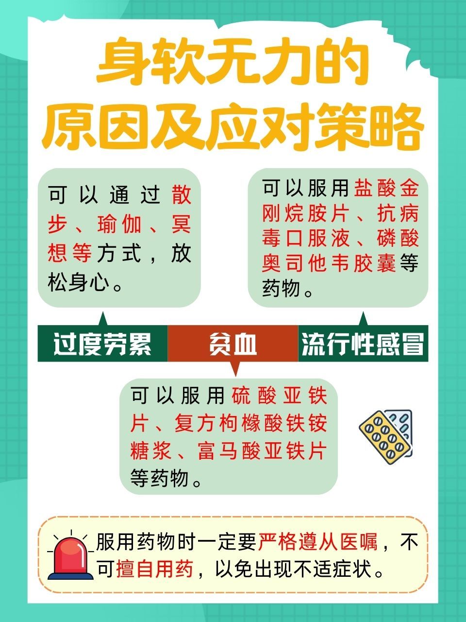 10、四肢无力腿脚发软且嗜睡可能与以下两种情况相关,需结合具体症状和医学检查综合判断1 贫血贫血是导致全身乏力嗜睡的常见原因之一其核心机制是血液中红细胞或血红蛋白含量降低,导致氧气运输能力下降,引发组织缺氧典型症状包括持续性疲劳即使休息后仍感体力不支头晕或眼前发黑站立或活动时。