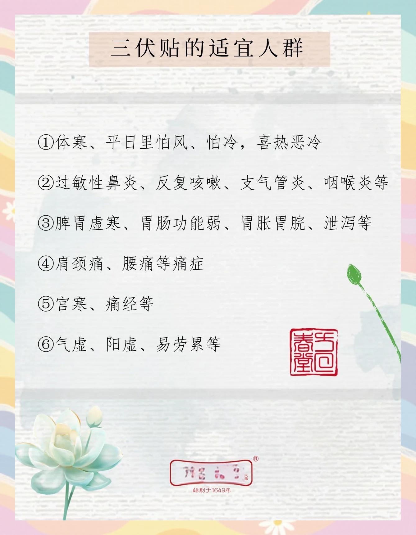 对于成人而言三伏贴的贴敷时间通常建议为8~10个小时这是基于成人皮肤耐受能力和药物吸收效率的综合考虑在此时间段内,药物能够有效渗透皮肤,发挥治疗作用,同时避免过长时间贴敷导致的皮肤不适或过敏对于儿童而言儿童的贴敷时间则需要根据年龄和体质来确定一般来说,年龄较小的儿童,如婴幼儿。