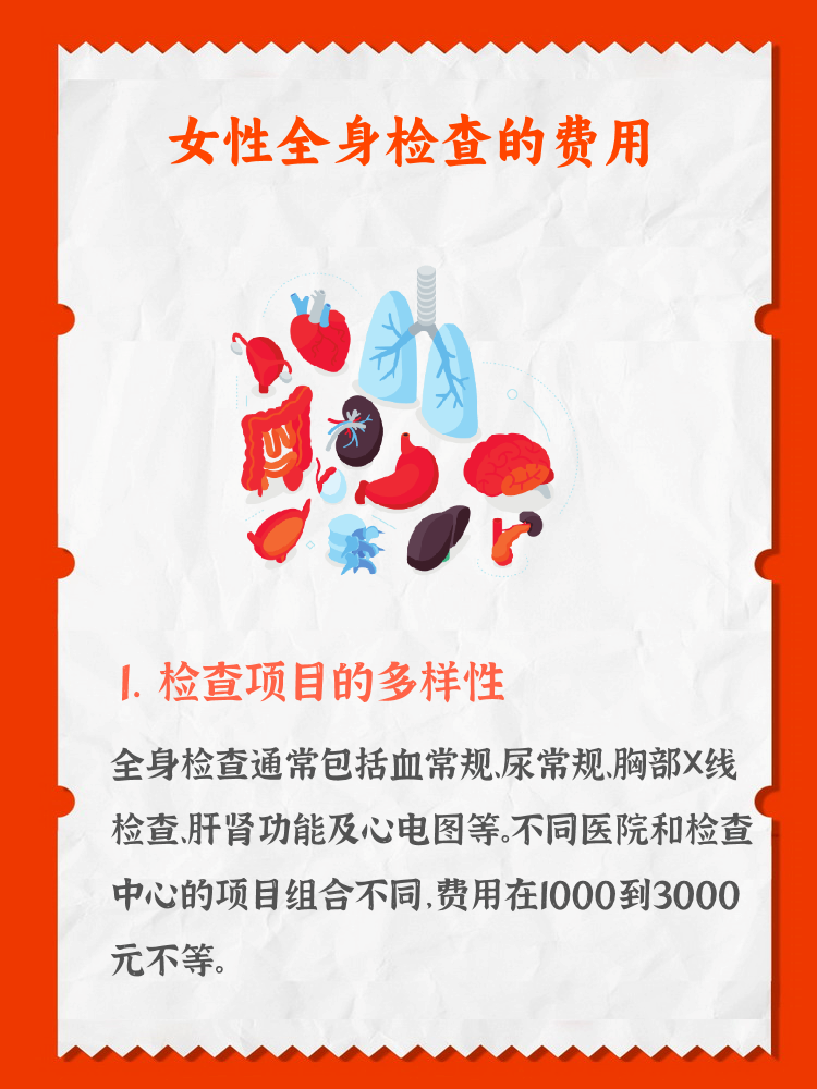 12、要是选择更全面的体检,包括心脏超声胸部CT胃肠镜等检查,费用通常会超过五千元,甚至上万元不同地区不同医院不同体检机构的收费标准存在差异此外,体检项目的选择也会对费用产生很大影响一些高端体检套餐会涵盖基因检测等先进项目,费用会更高在进行全身体检时,可以根据自身需求和经济状况。